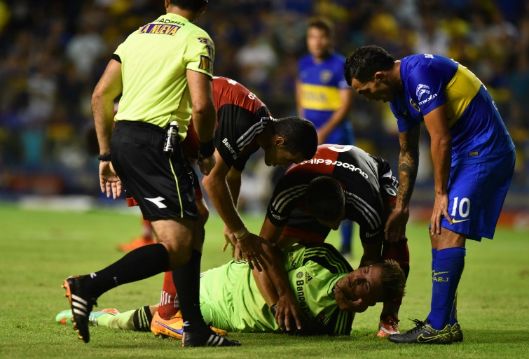 Hesaferð var tað málverjin hjá argentinska liðnum, Newells Old Boys, Ezequiel Unsain, sum stóð fyri skotum. Liðið hjá Carlos Tevez, Boca Juniors var á odda 3-0 í heimadysti í bestu argentinsku fótbóltsdeildini, tá Carloz Tevez fekk eina góða fríspæling. Ezequiel Unsain í Newells Old Boys málinum gjørdi sítt besta at skerma av, og Carlos Tevez gjørdi ikki mætari enn at senda knæið í andlitið á Ezequiel Unsain við tí úrsliti, at Ezequiel Unsain hevur fingið eitt dupult kjálkabeinsbrot.