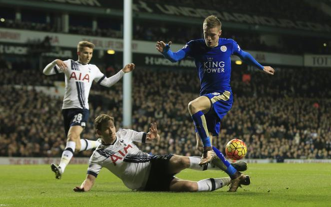 Leicester City er nú oddalið saman við Arsenal, eftir at Leicester vann 1-0 á útivølli móti Tottenham. Bæði Arsenal og Manchester City spældu javnleikir.