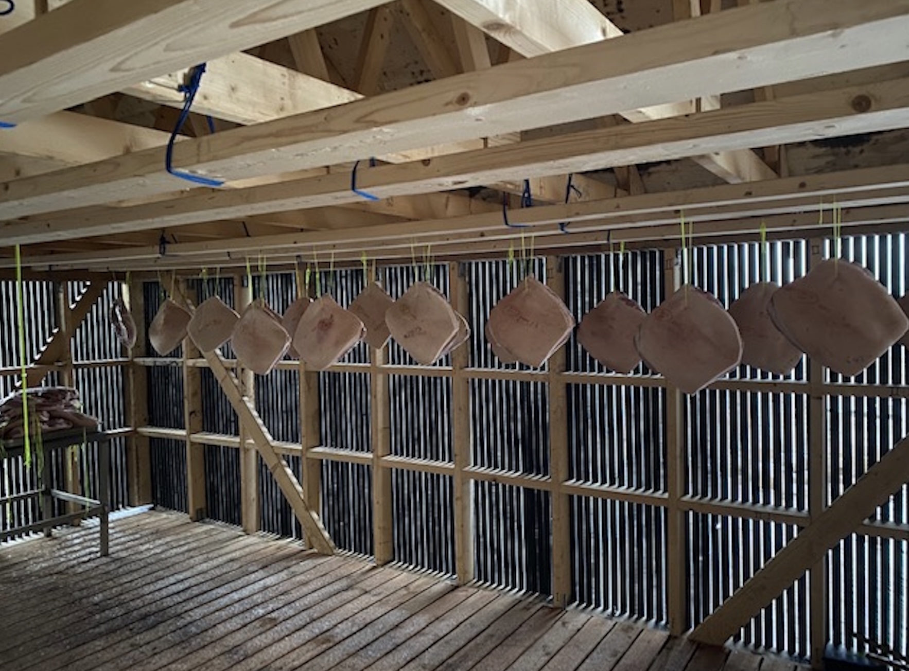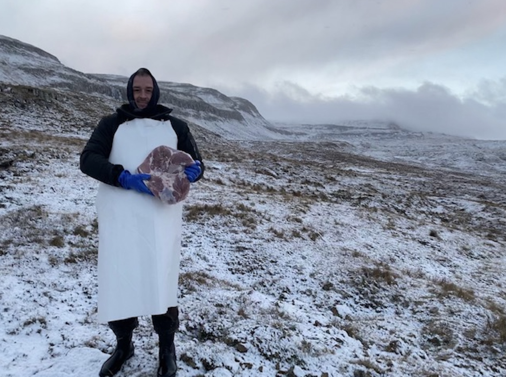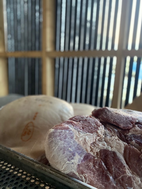 Henda skinkan er verkætlan hjá Torkil Dalsgaard, bónda á Dalsgarði, og Johan Mortensen. Í februar mánað í fjør vóru 50 skinkur hongdar upp í hjallin í Norðasta Haga, og nú verður mett, at skinkan er nóg búgvin. Februar og mars í fjør vóru sera kaldir við nógvum frosti og mett verður, at hetta var ein optimal byrjan til turkingina. Og Dalsgarðs-skinkan hevur premieru úti í Hattarvík leygardagin.