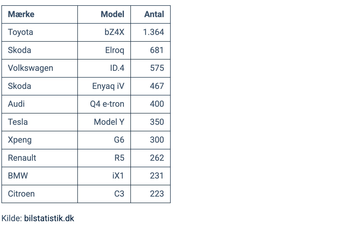 Topp 10 sølan persónbilum í Danmark í februar sá soleiðis út:
