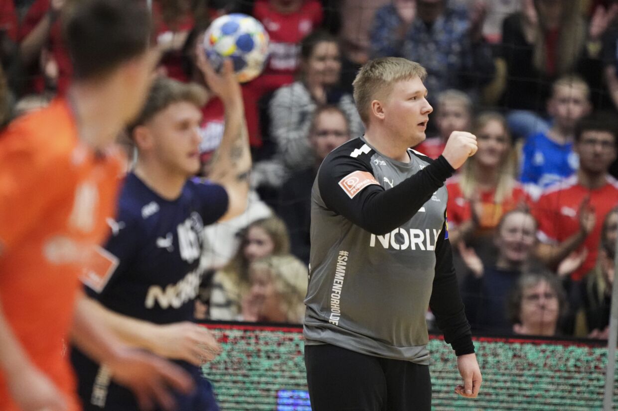 Niðurlond fingu ikki eitt bein til jørðina í fyrra hálvleiki, og í steðginum var Danmark á odda 19-5. Í fyrra hálvleiki bjargaði dagsins maður, Emil Nielsen (myndin) 74 prosent av niðurlendsku málroyndunum.