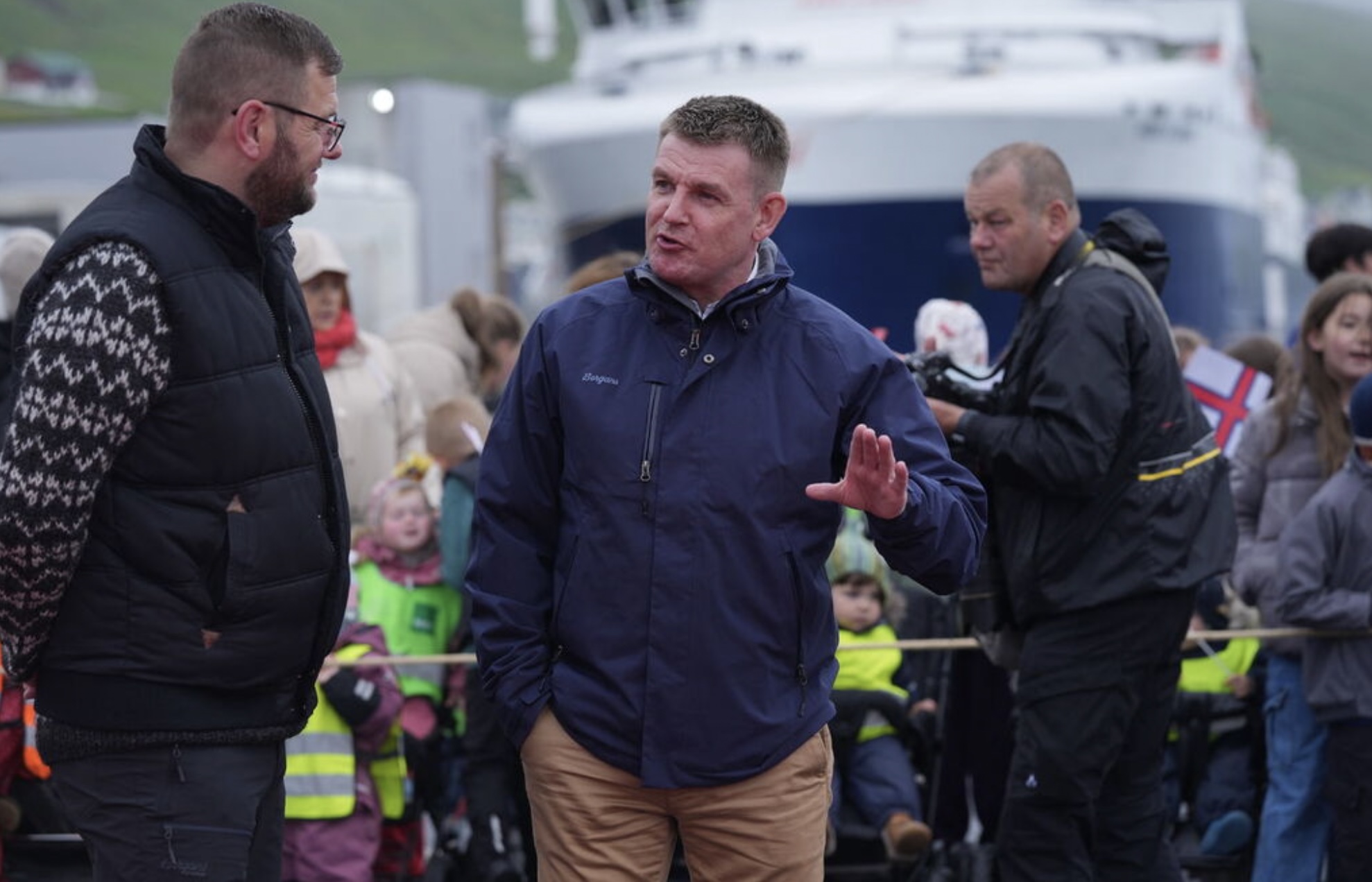 Nú eru vitjanin hjá kongshjúnunum í Suðuroy alment byrjað. Har er tað Bjarni Johansen, borgarstjóri, sum tekur ímóti, heldur røðu og navnkennir býráðið.