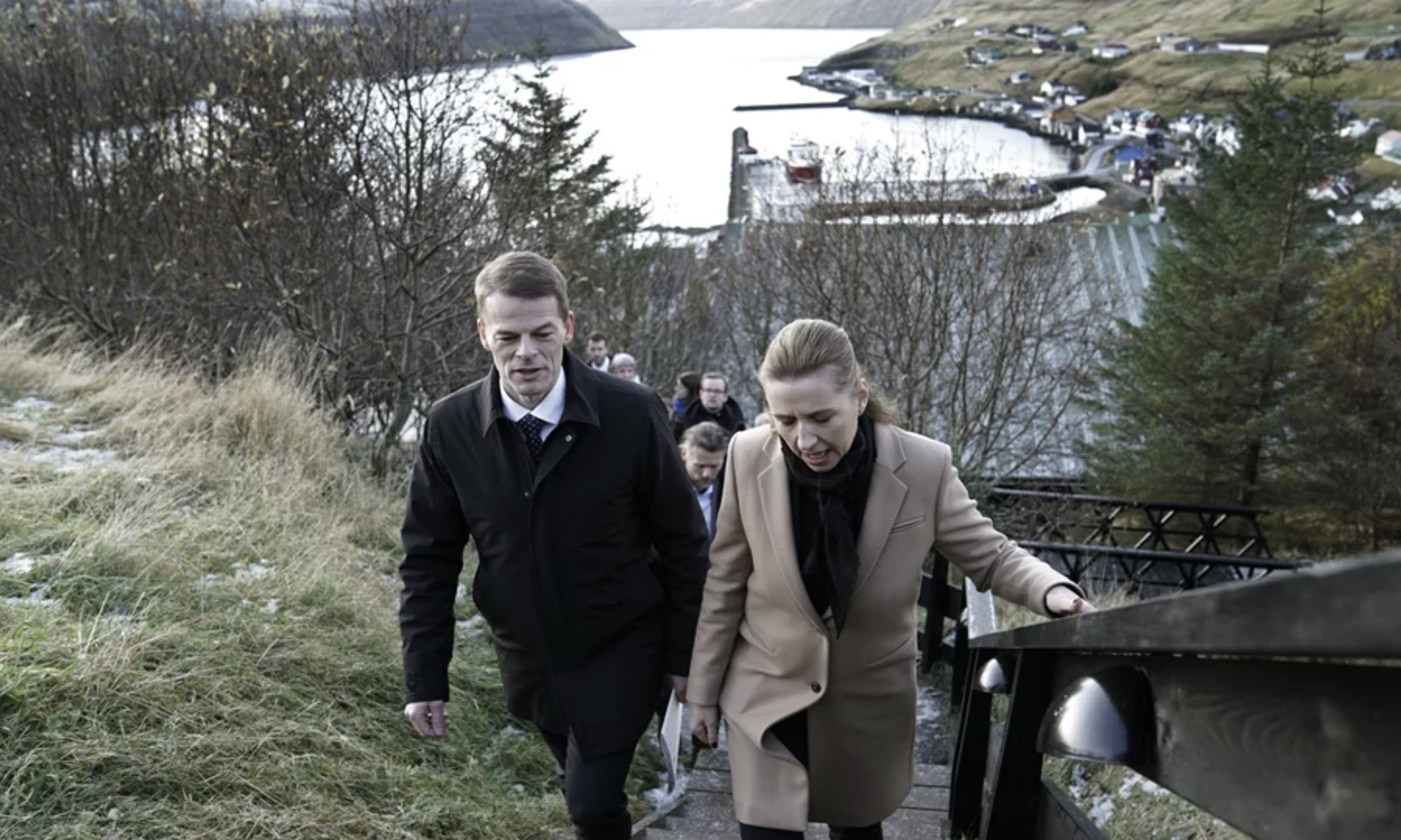 Mette Frederiksen og maðurin fara av landinum aftur hóskvøldið. Hetta er aðru ferð at Mette Frederiksen er á almennari vitjan í Føroyum. Fyrru ferð var í november 2019, haðani myndin er.