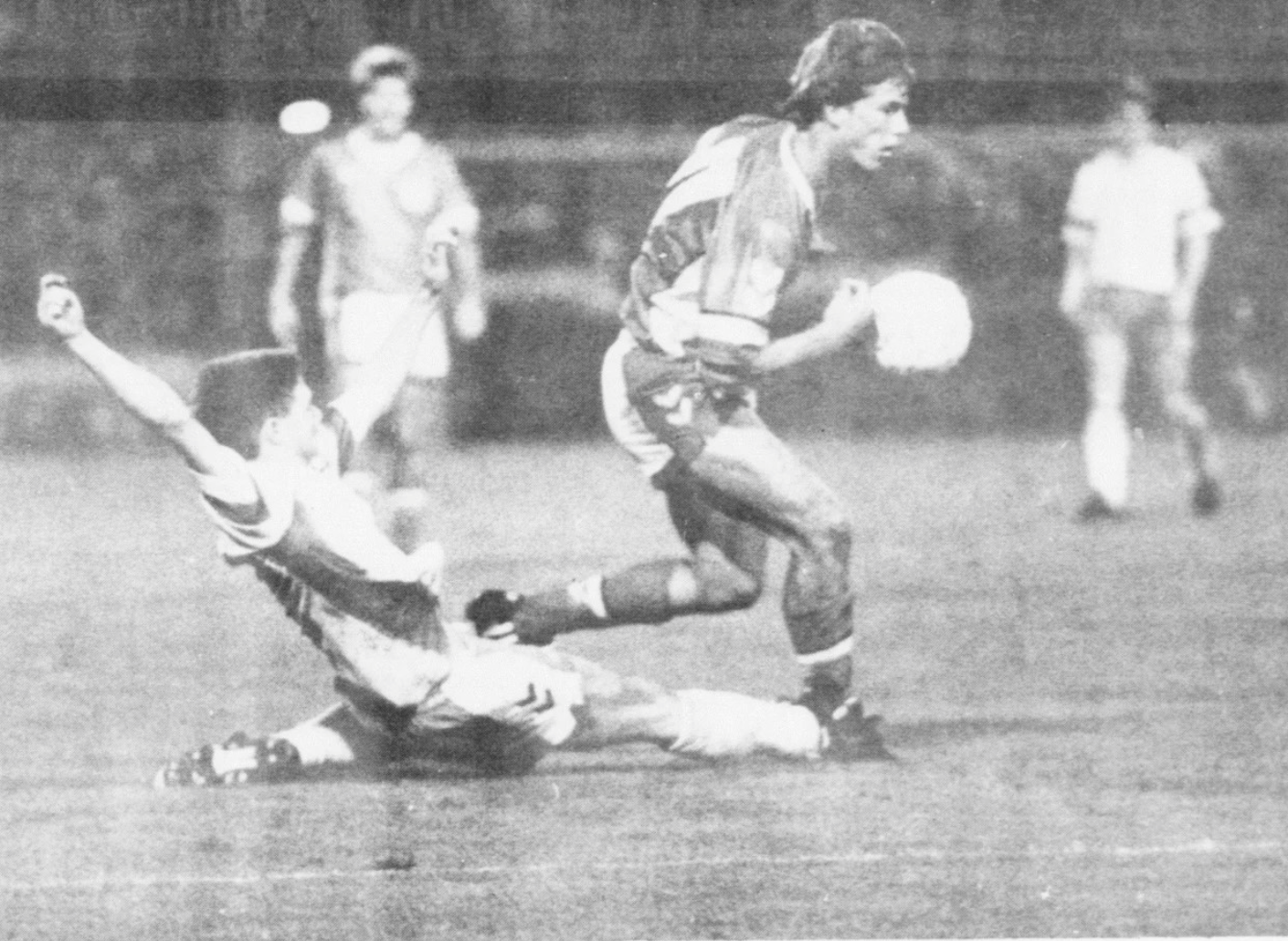 Myndina tók Hilmar Jan Hansen undir dystinum millum Danmark og Føroyar í Ítróttarparkini í Keypmannahavn 10. oktober í 1990. Sum myndatekst skrivaði Hilmar Jan Hansen soleiðis: