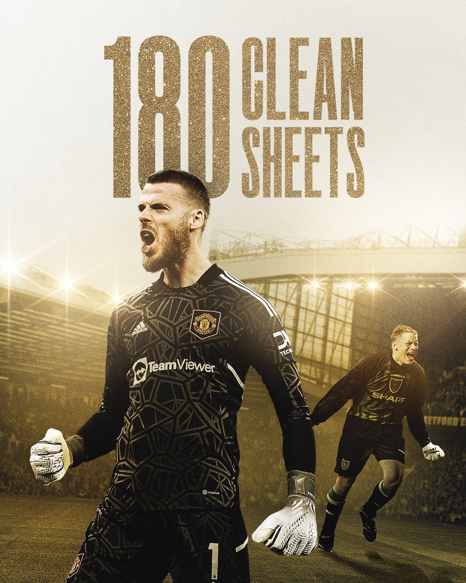 Hetta merkir, at De Gea hevur javnað metið hjá donsku málmanslegundini, Peter Schmeichel sum vardi málið hjá United millum 1991 og 1999.