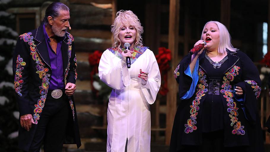 Á Myndini ovast síggjast Dolly Parton og Randy á palli sman við dottur hansara Heidi.