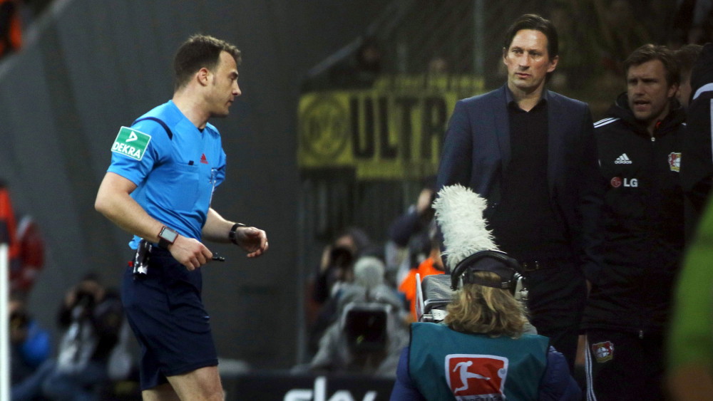 Hóast spælararnir hjá Leverkusen mótmæltu, so vildi Felix Zwayer ikki broyta avgerðina. Roger Schmidt, venjari hjá Leverkusen var sera misnøgdur um frísparkið, sum Dortmund slapp at taka á skeivum staði, og hann mótmælti hvassliga. Hetta fekk Felix Zwayer at vísa Roger Schmidt tað reyða kortið, men venjarin hjá Leverkusen sýtti fyri at fara av vøllinum.