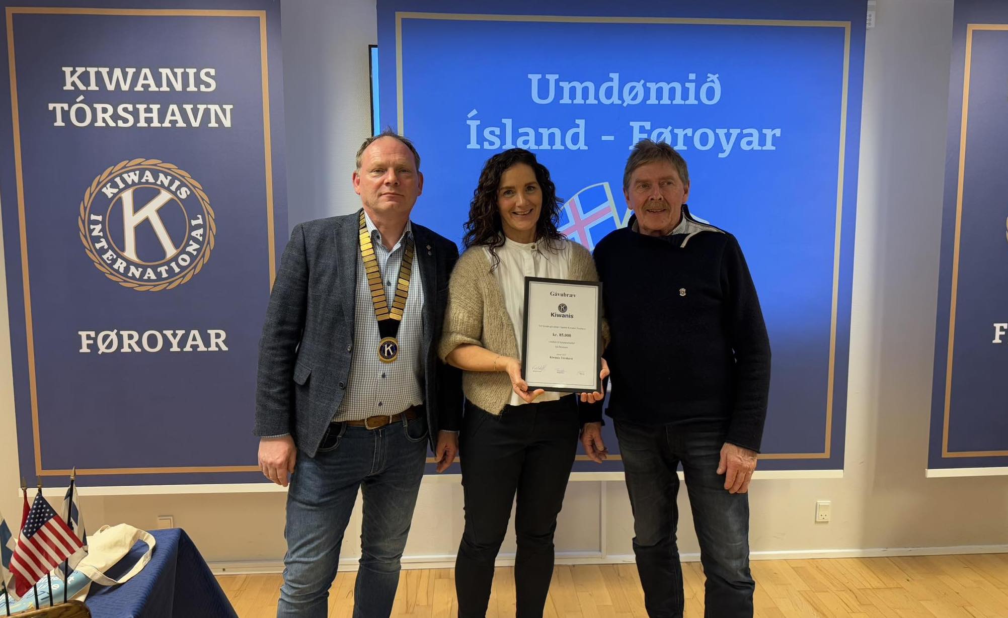 - Nú er uppgjørt, og á limafundi mikukvøldið handaði Kiwanis Tórshavn, Oddvør Poulsen leiðara hjá Beranum, 85.000 krónur.