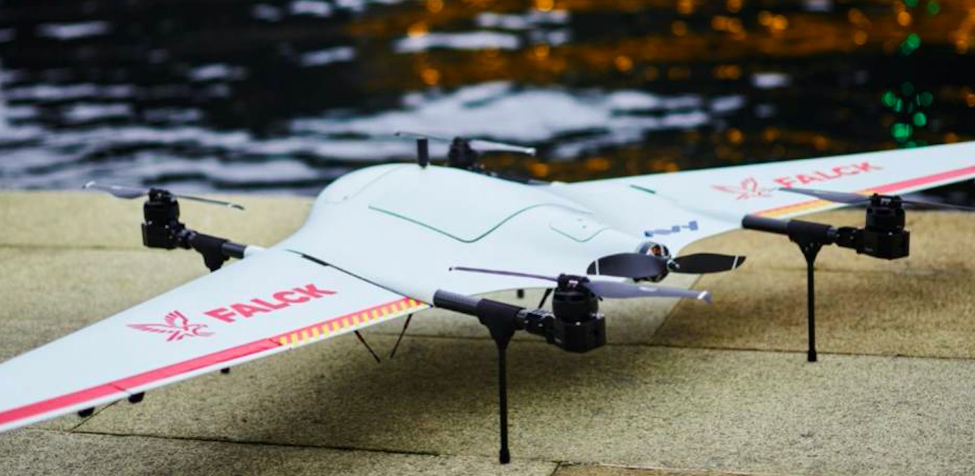 Falck veit at siga, at dronurnar, sum fara at verða brúktar í Grønlandi til hesar uppgávur, verða reyðar, og sniðið verður kanska eitt sindur øðrvísi enn dronan á myndini omanfyri.