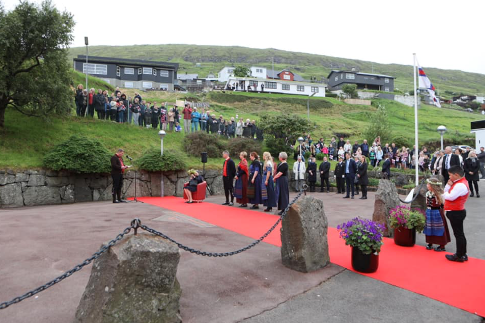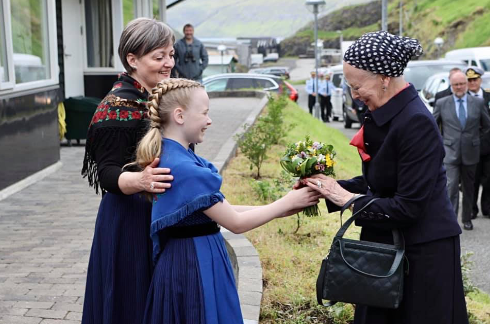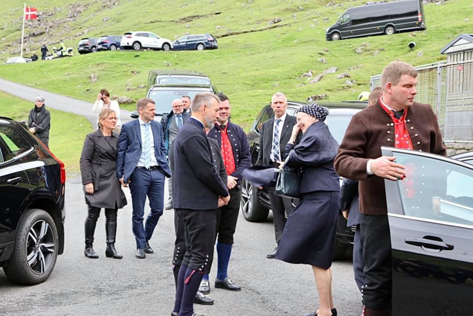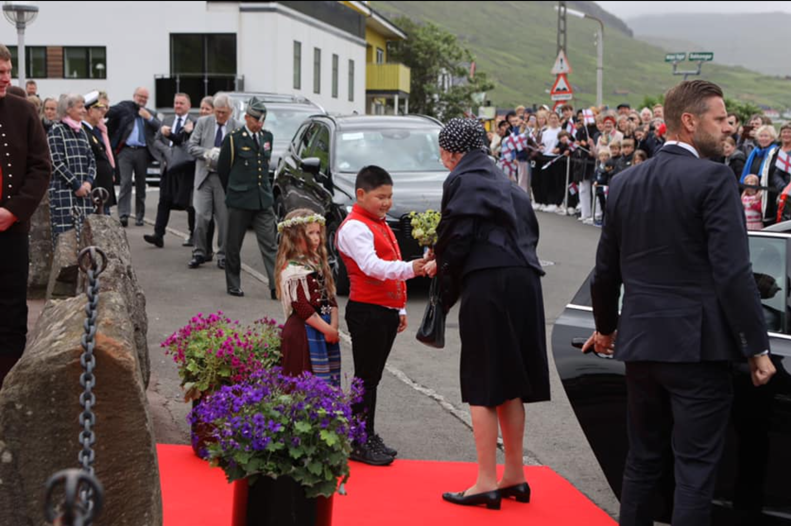 Drotningin kom beint fyri klokkan 10 til Vestmanna, og dagsins skrá varðar til klokkan gott 9 í kvøld.