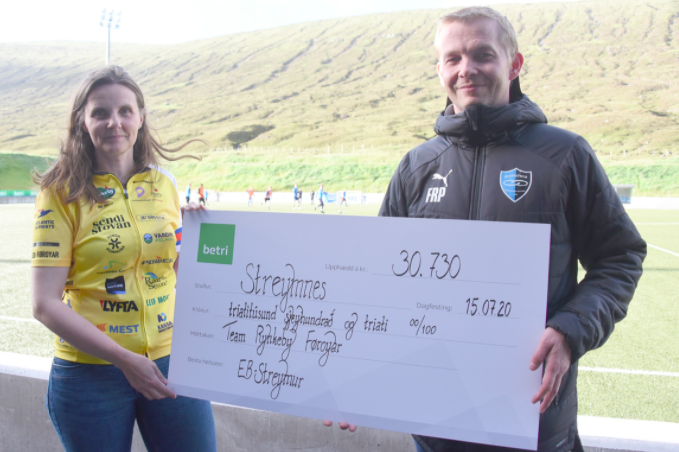 Sunnudagin, tá EB/Streymur og HB spældu í Betrideildini fór øll atgongumerkjainntøkan óskerd til Team Rynkeby Føroyar. Í kvøld kundi formaðurin í felagnum, Fróði Reinert Petersen, handa Jóhonnu við Streym frá Team Rynkeby Føroyum ein kekk áljóðandi 30 túsund og 730 krónum, skrivar heimasíðan hjá EB/Streymi í dag.