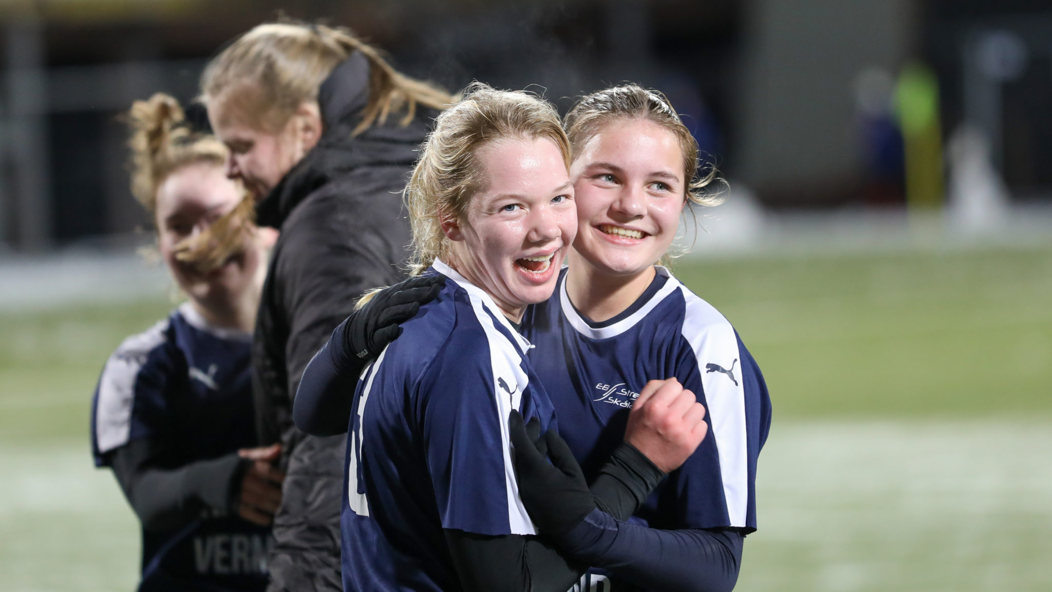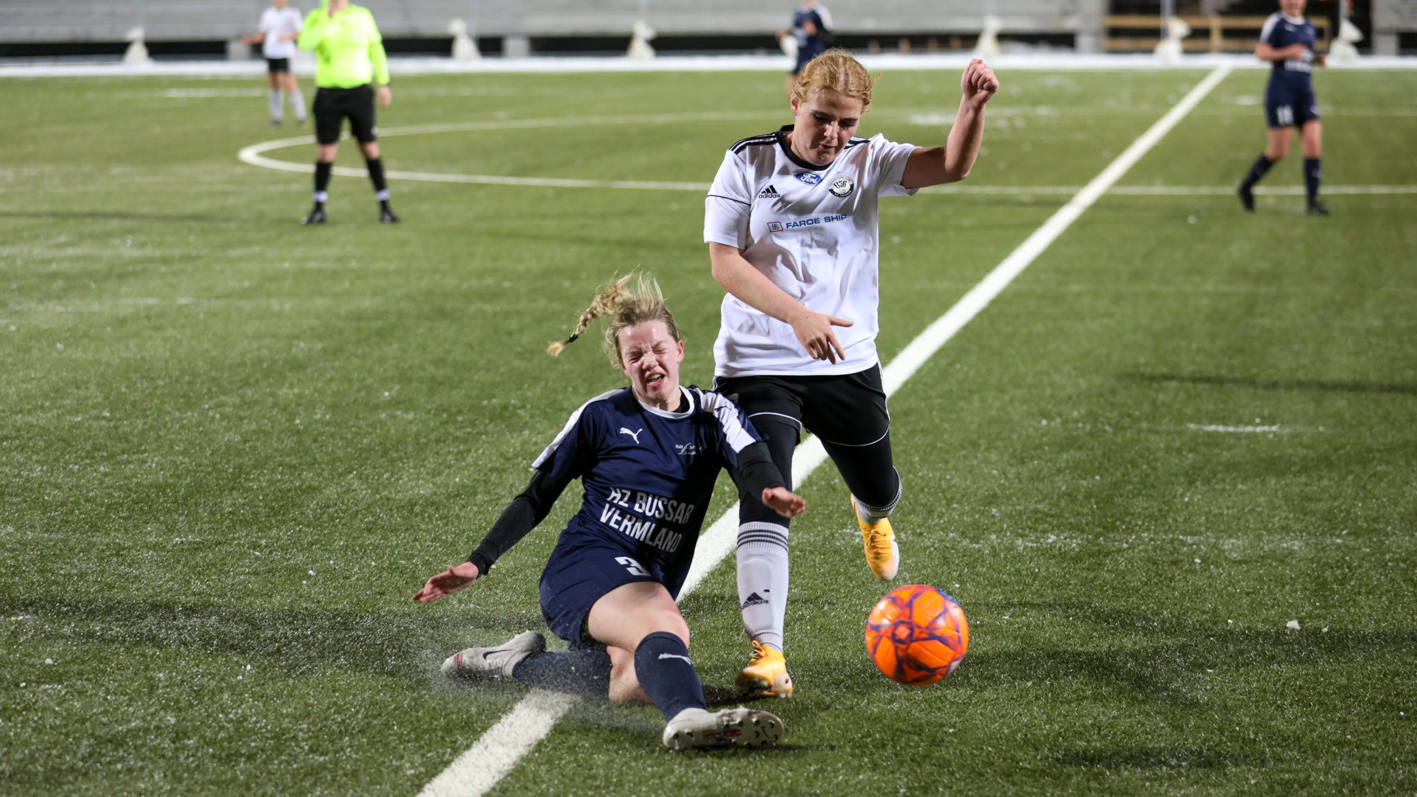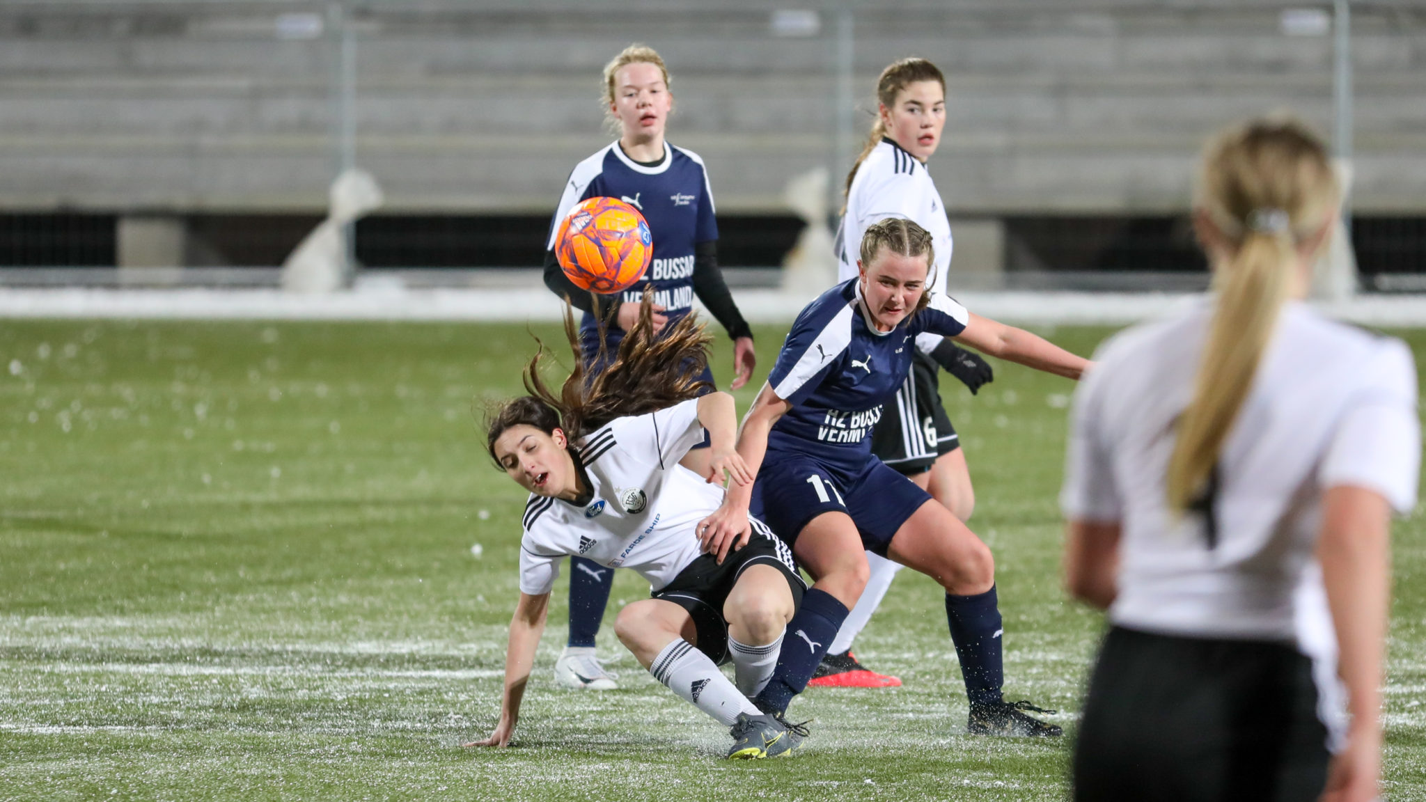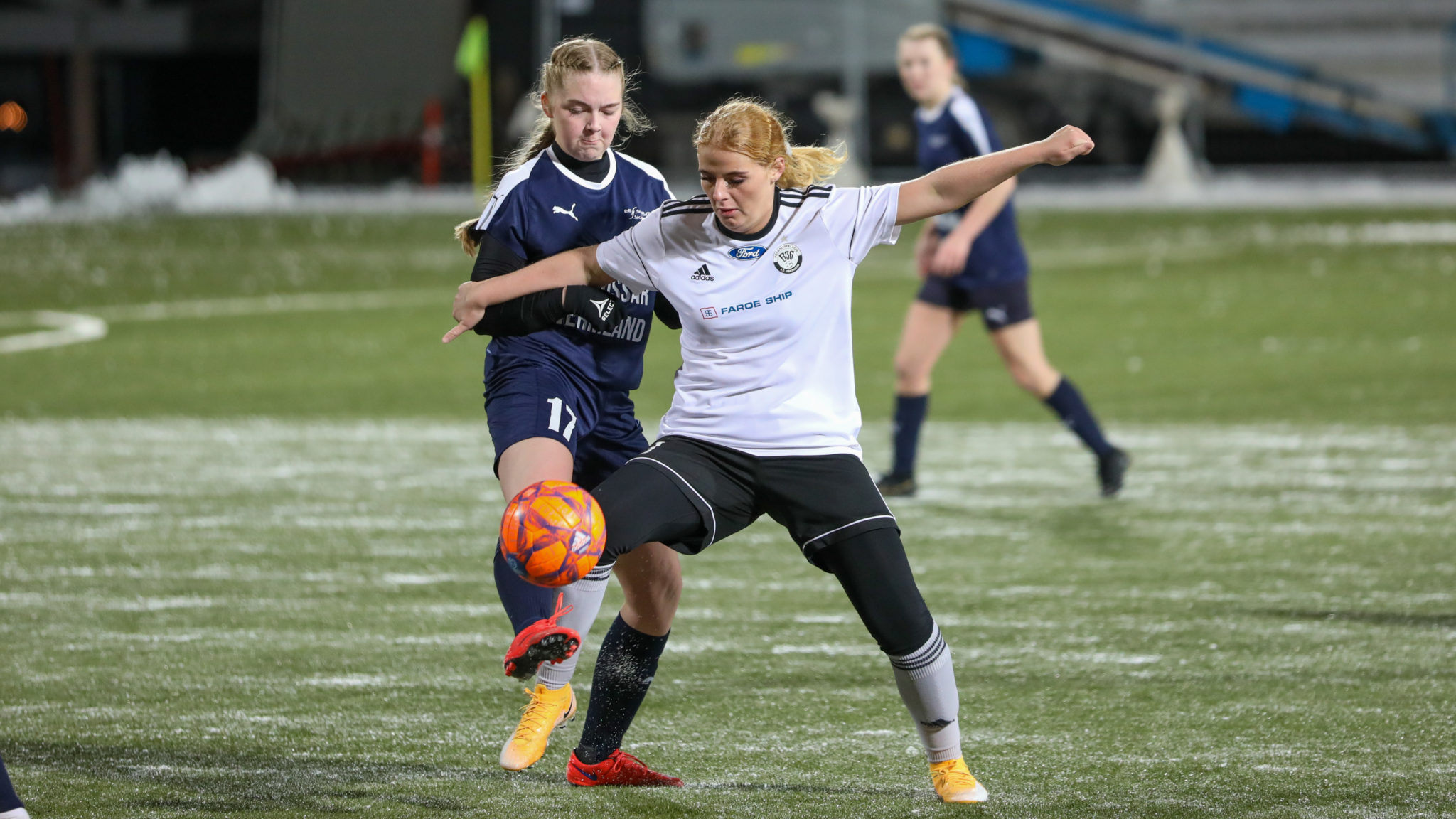 Áskoðararnir fingu eina langa og spennandi steypafinalu í kuldanum á Tórsvølli, tá nummar gull- og silvurvinnararnir í landskappingini hjá gentum U18 brustu saman. EBS/Skála og B36 skiftust eisini um at stýra spælinum í dystinum.