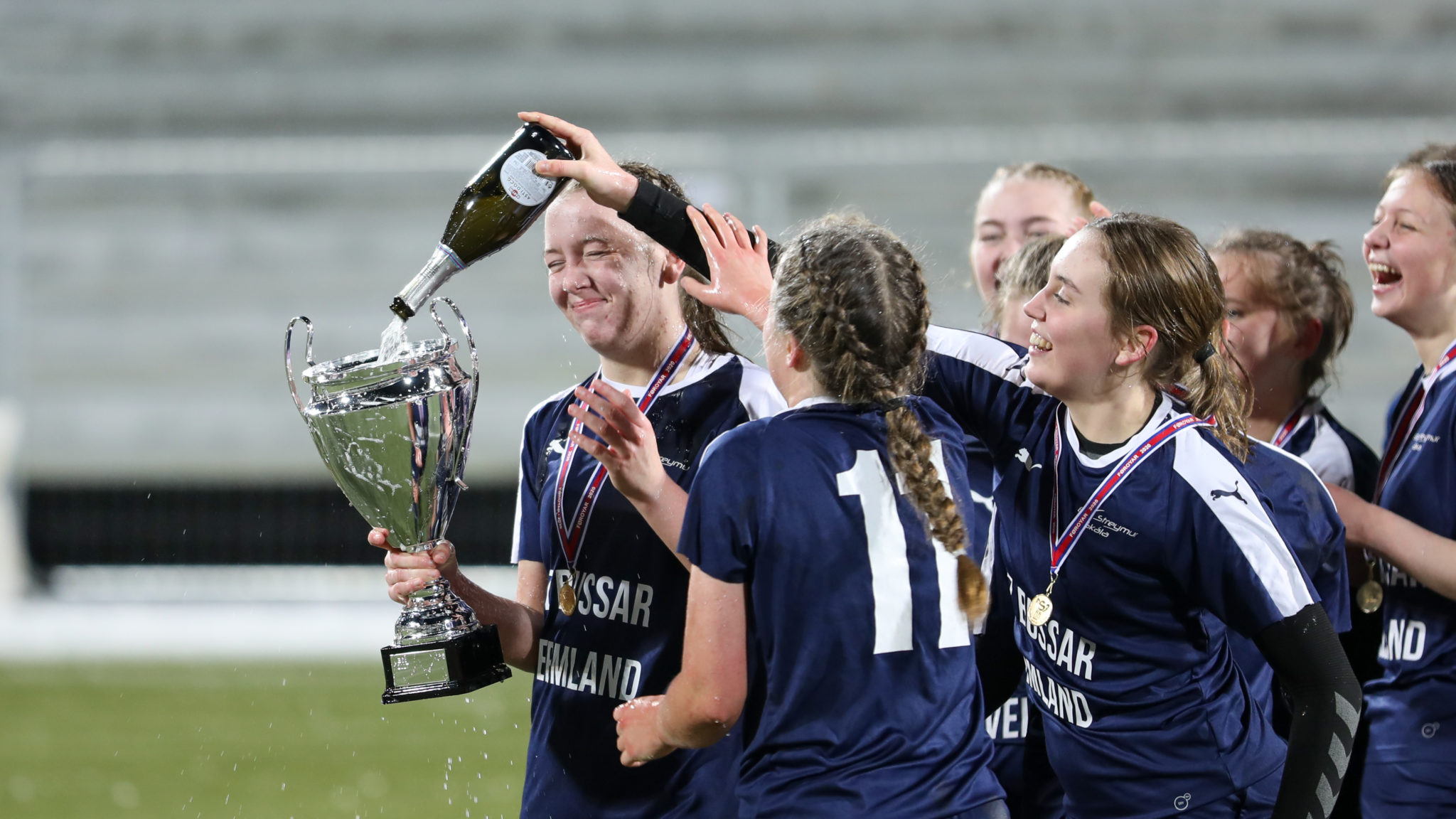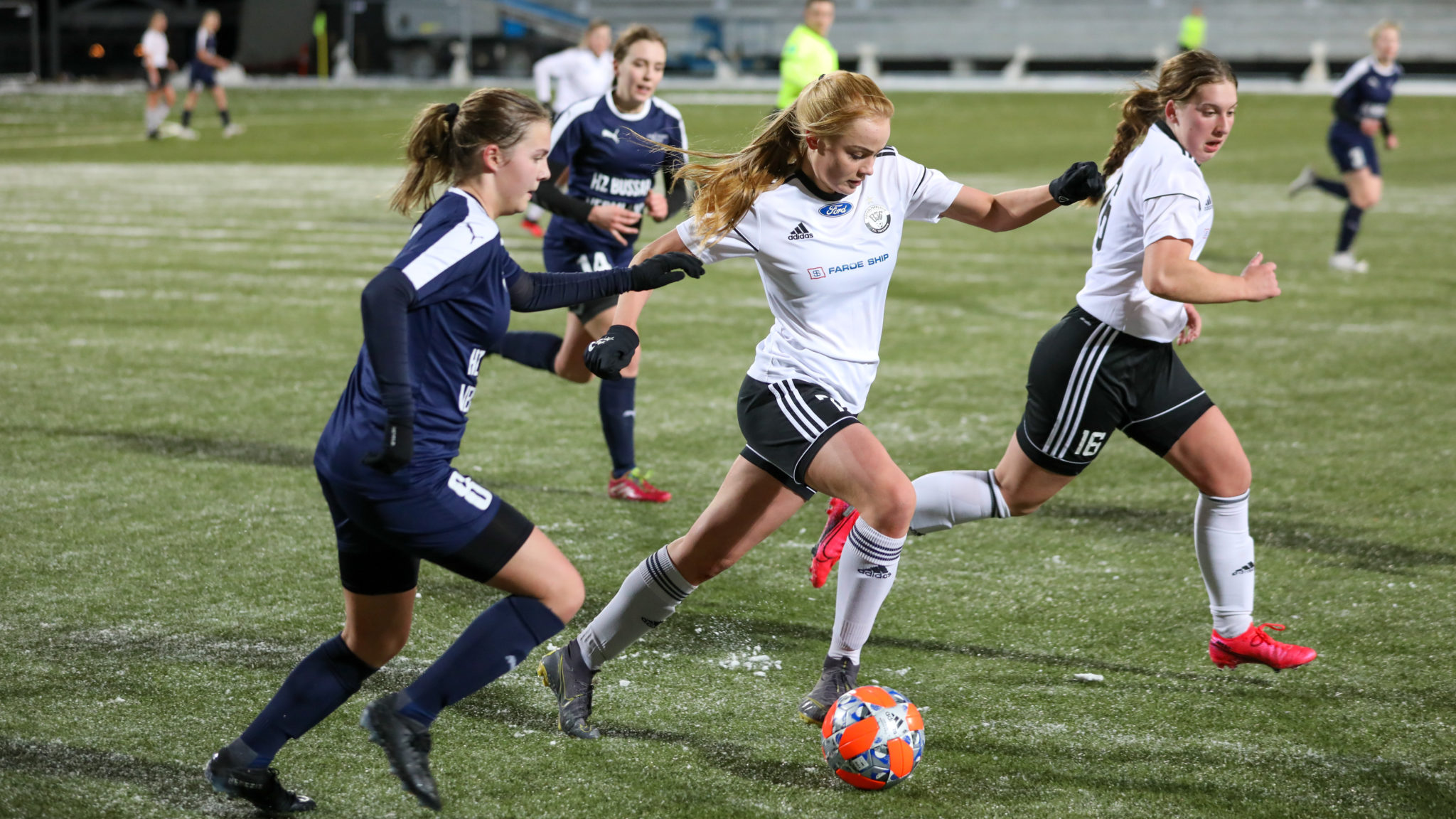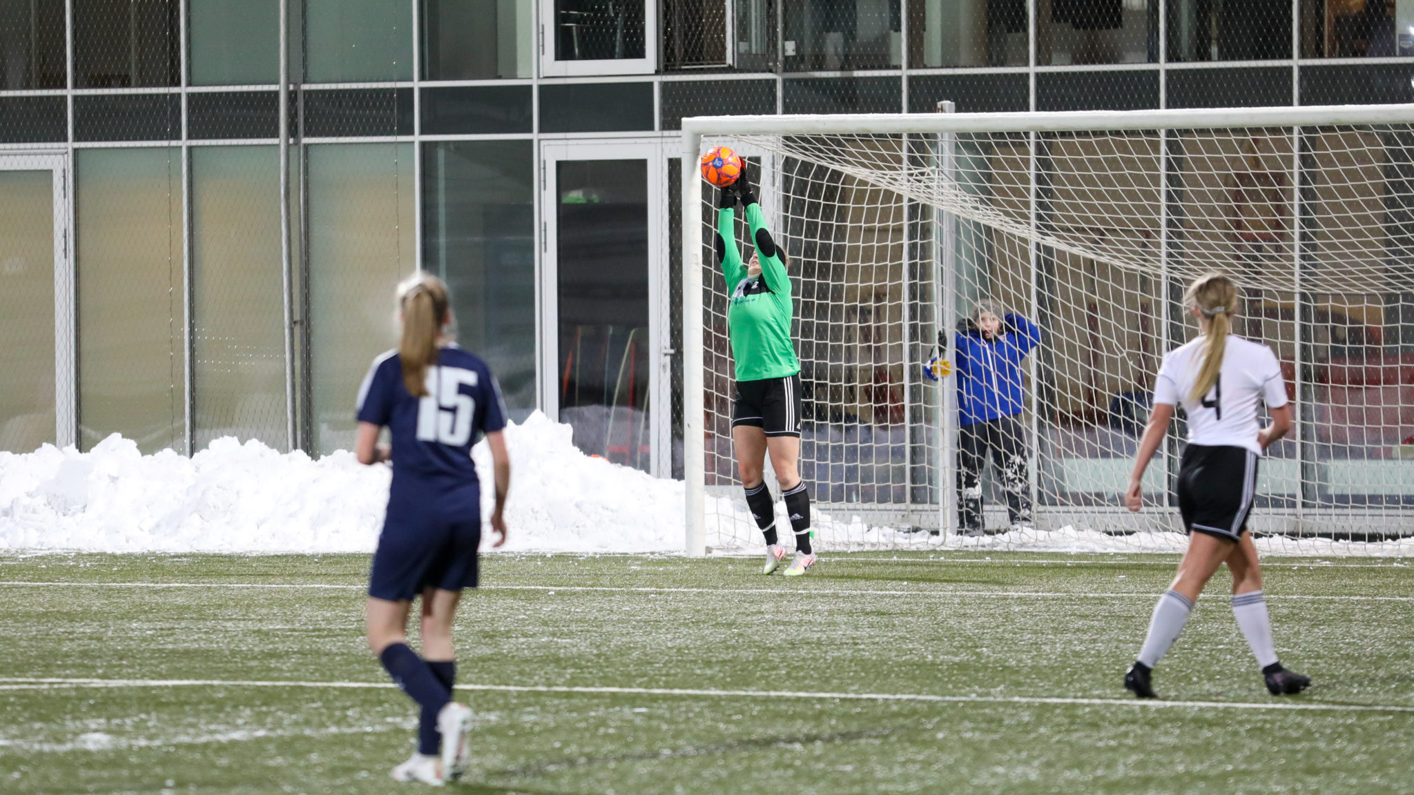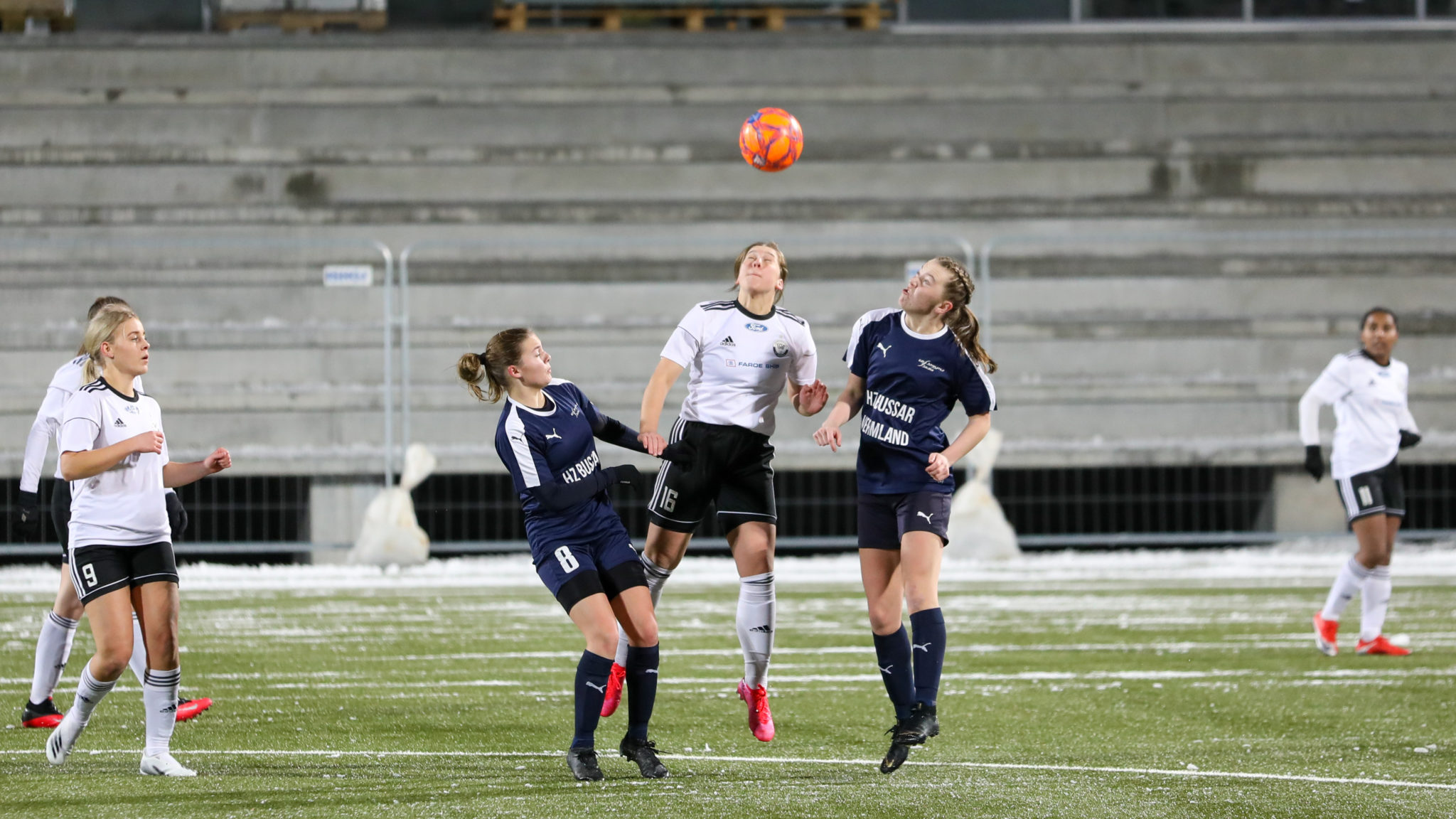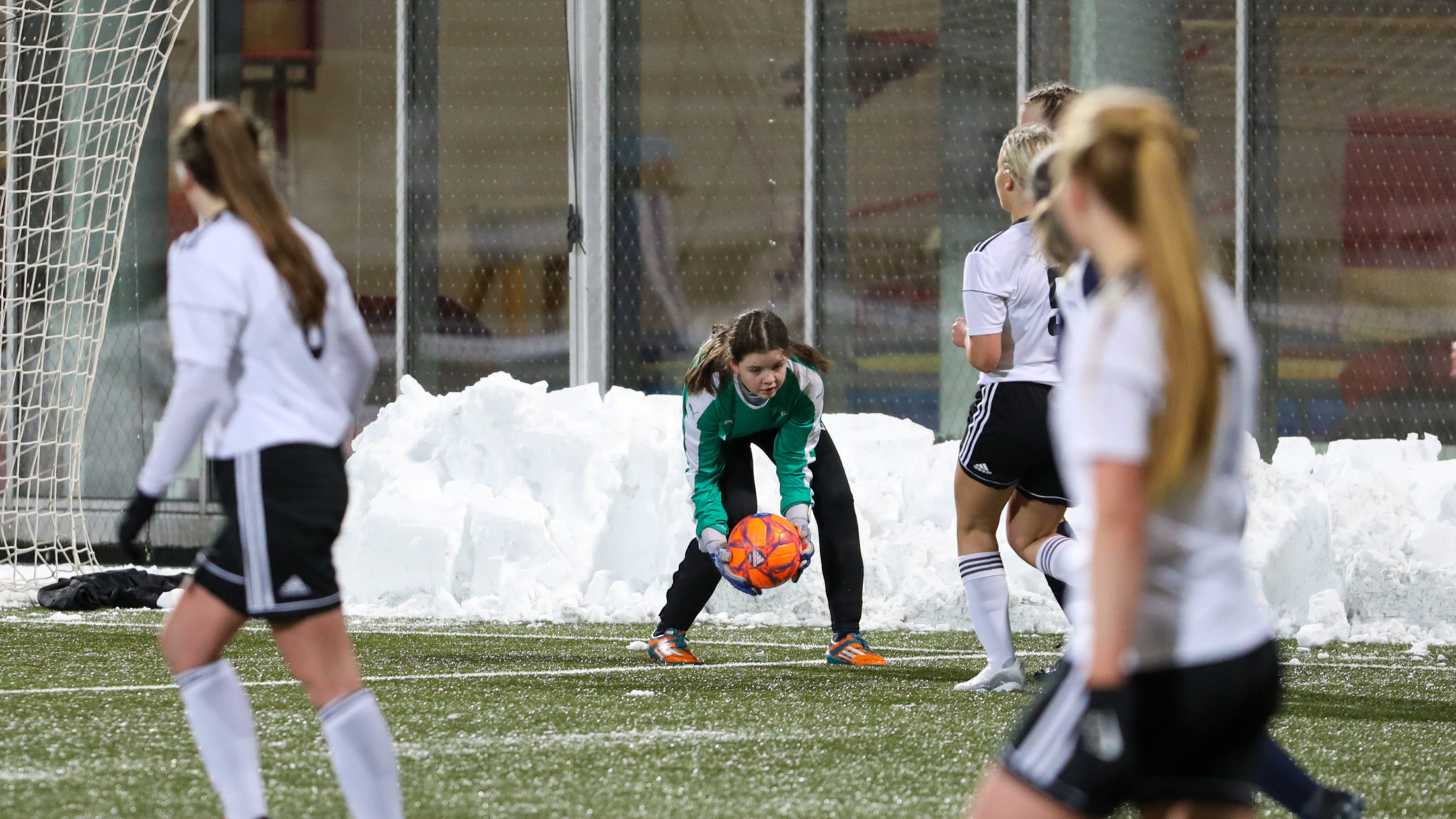 Áskoðararnir fingu eina langa og spennandi steypafinalu í kuldanum á Tórsvølli, tá nummar gull- og silvurvinnararnir í landskappingini hjá gentum U18 brustu saman. EBS/Skála og B36 skiftust eisini um at stýra spælinum í dystinum.