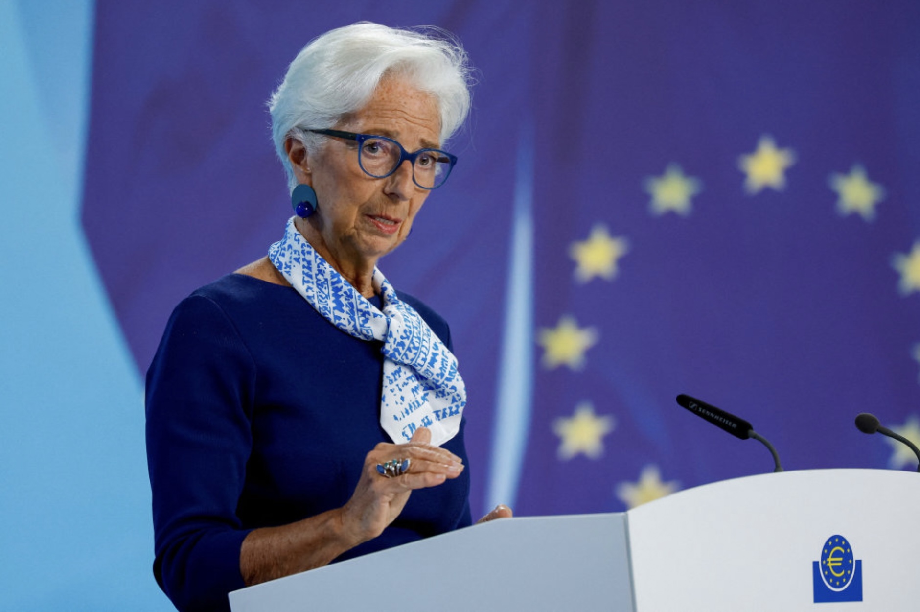 Á tíðindafundi hósdagin segði forkvinnan í ECB, Christine Lagarde, at spenningurin á handilsøkinum ger búskapin ótryggan.