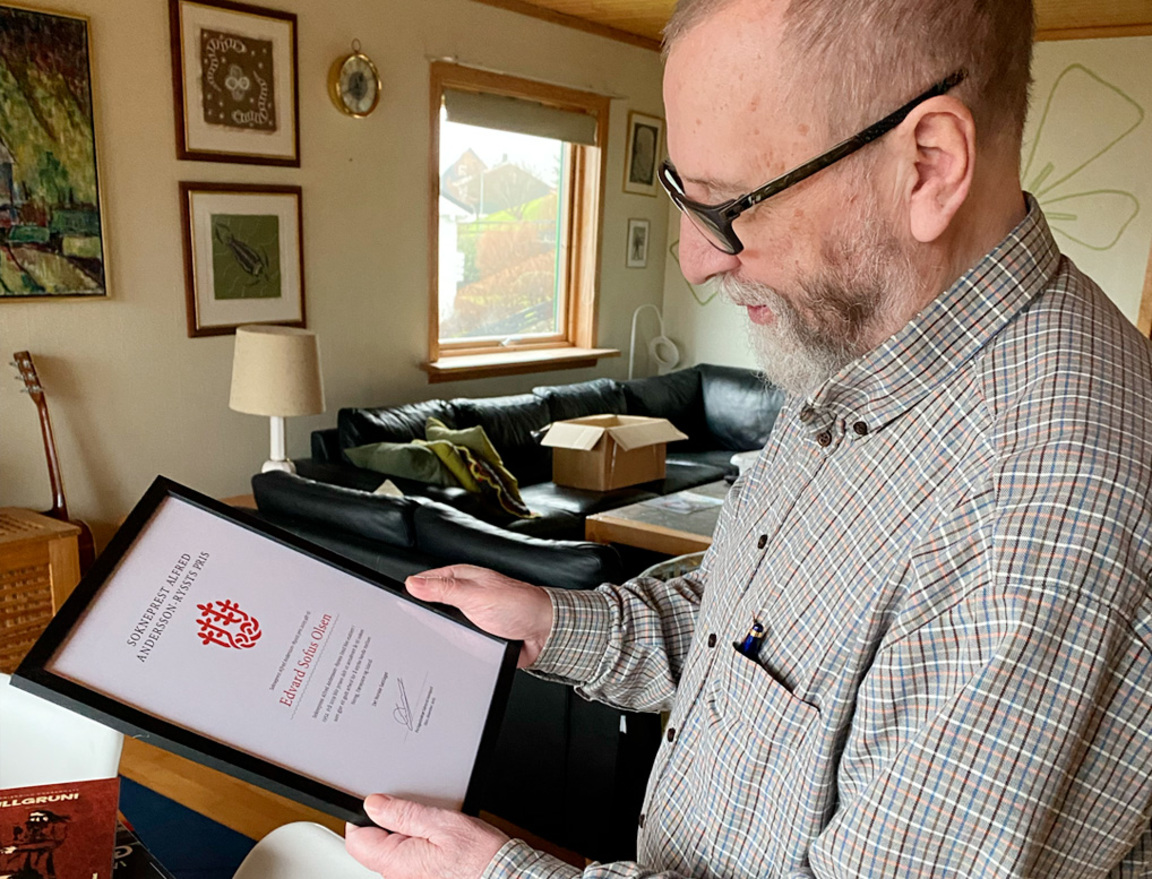 Edvard Olsen hevur fingið heiðursløn úr Noregi fyri sínar dygdargóðu týðingar av norskum skaldskapi, skrivar sprotin.fo.