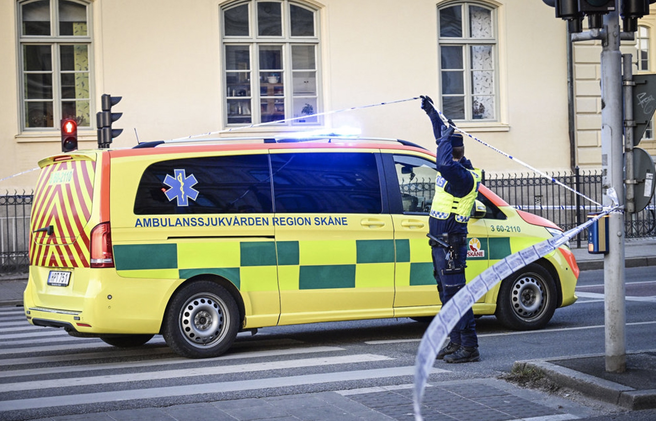 Tvey særd fólk eru koyrd á sjúkrahús, og ein persónur er handtikin, eftir at løgregla og sjúkrabilar seint seinnapartin vórðu boðsend til ein studentaskúla í Malmø, har fráboðan var um álvarsaman kriminalitet.