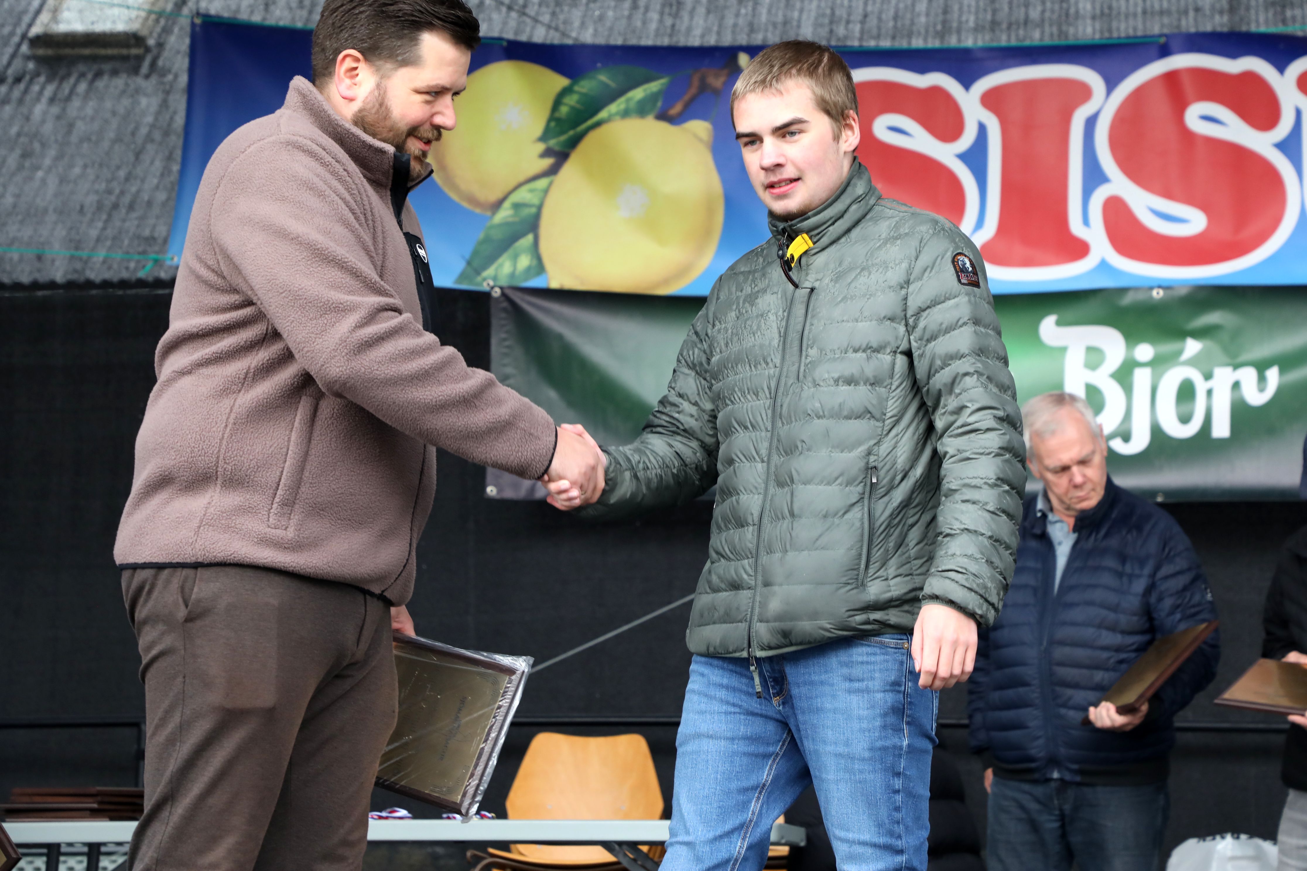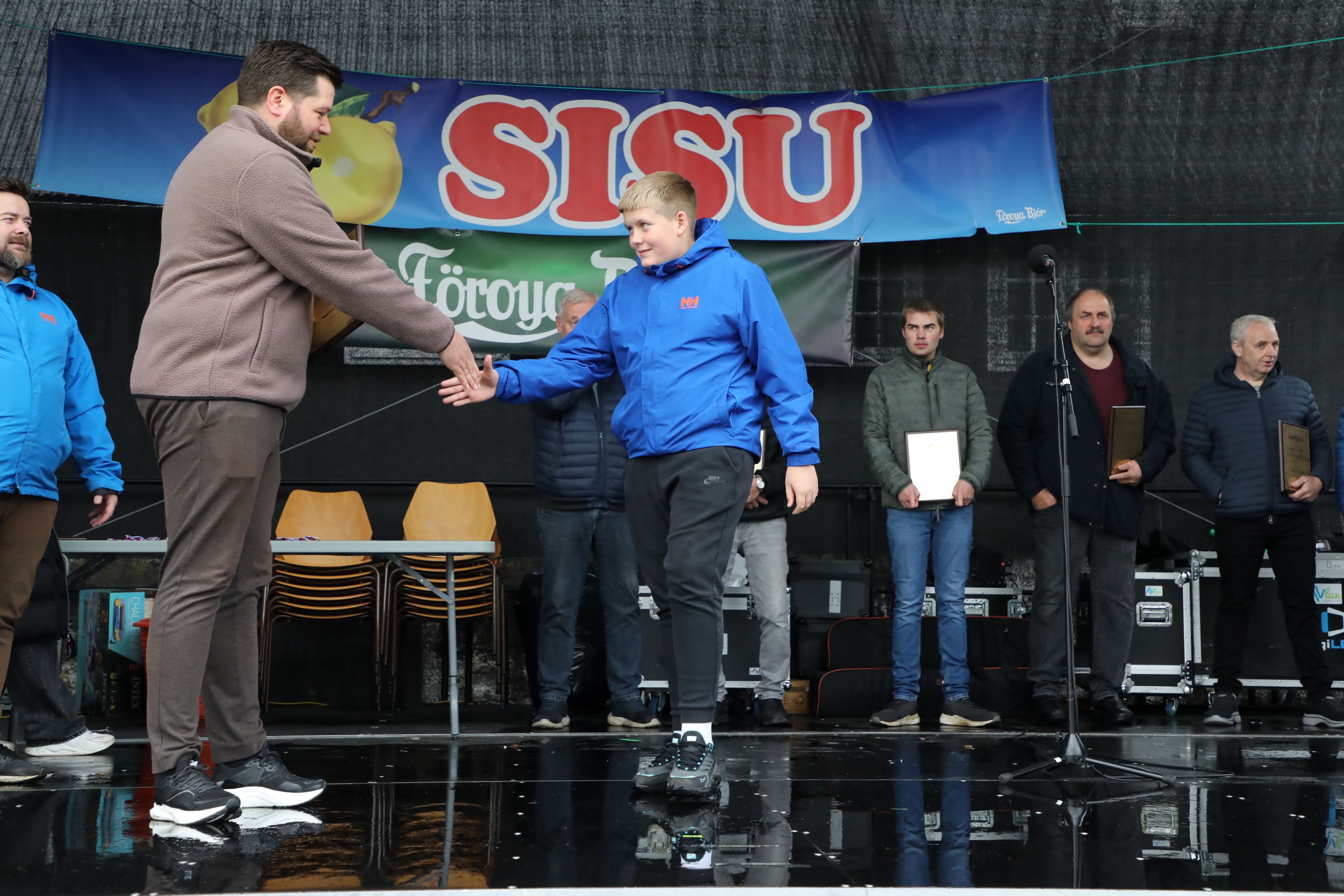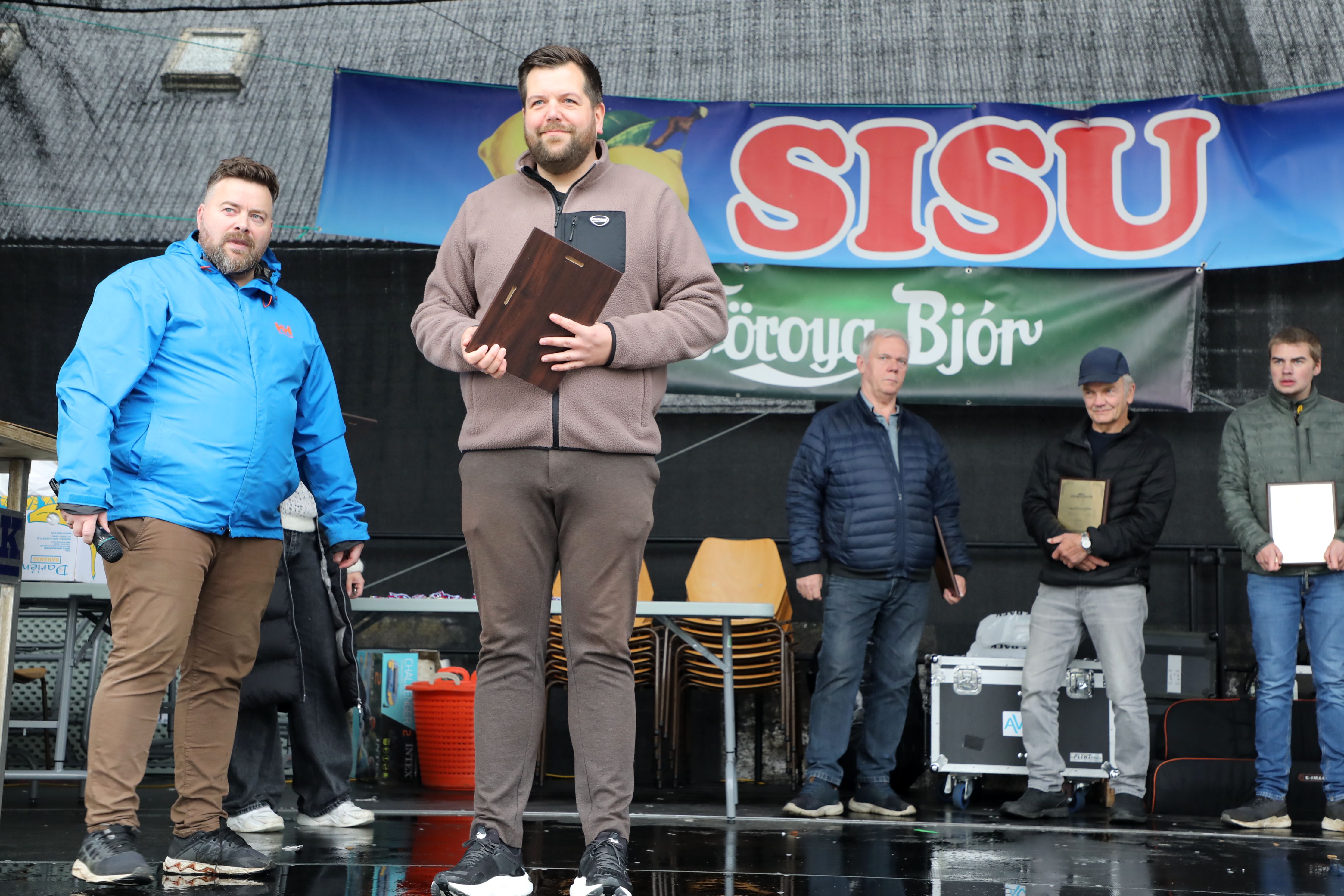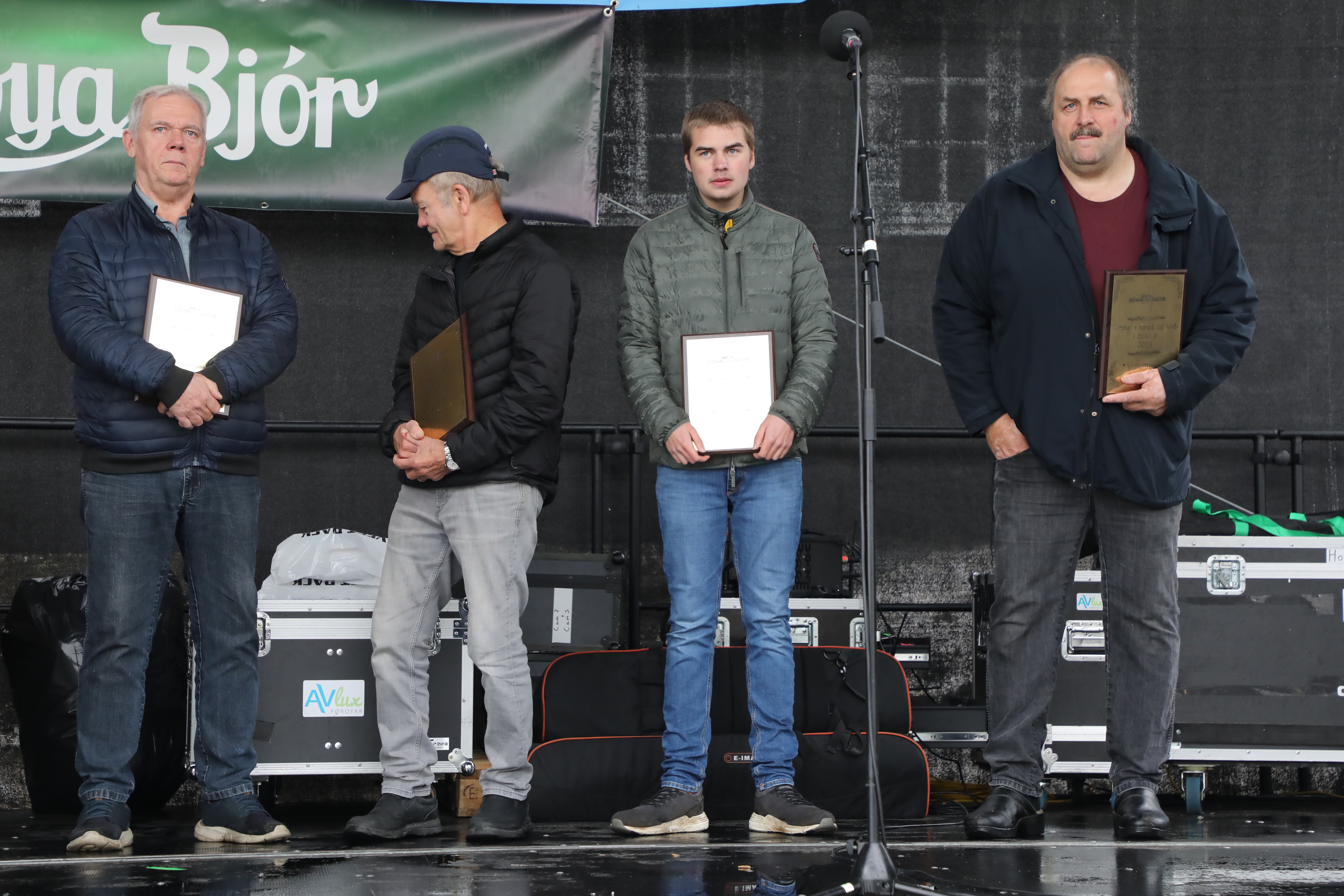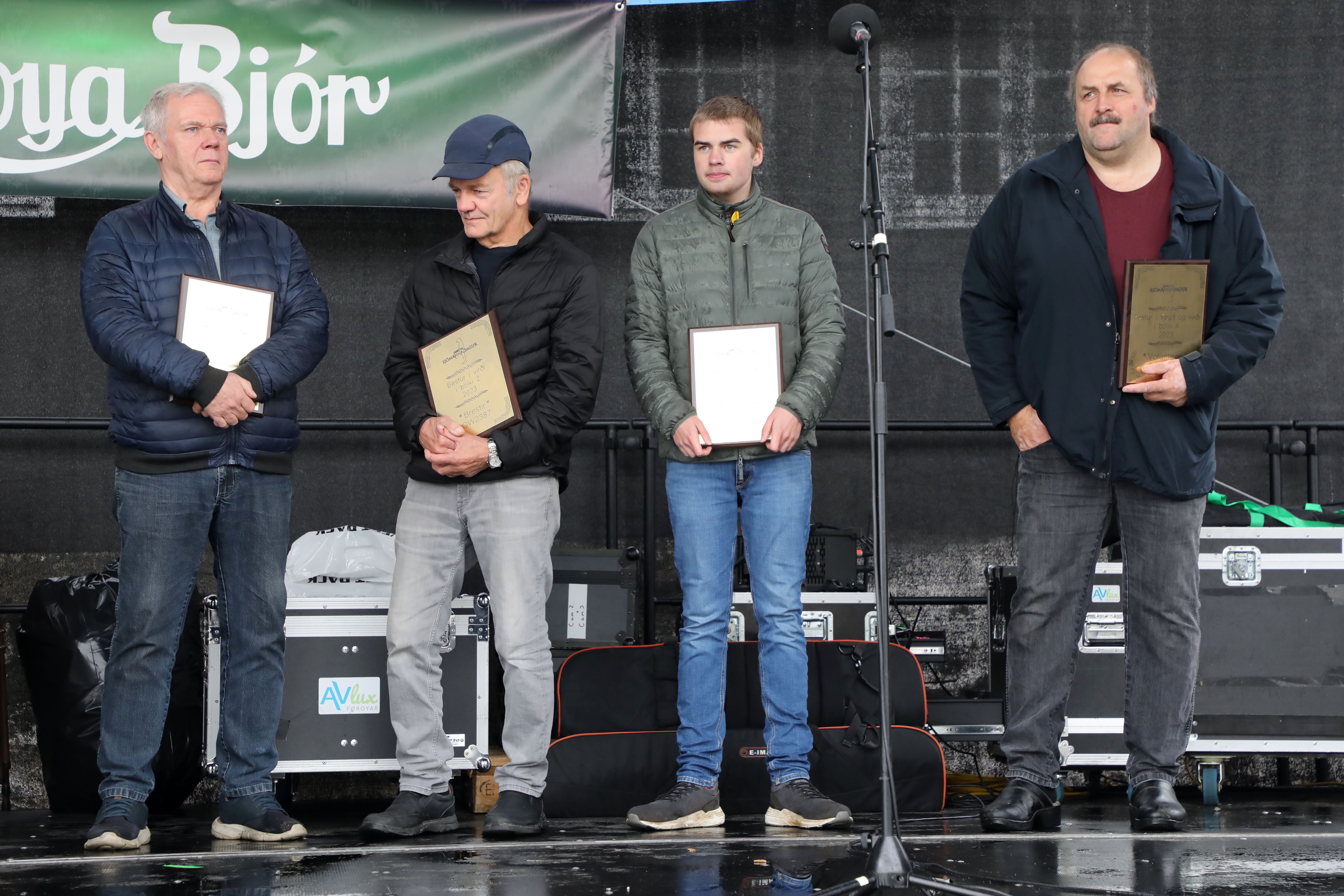 Eftir røðuna heiðraði Eirikur í Jákupsstovu, løgtingsmaður bestu skip og bátar í Føroyum við heiðursmerki, sum Sjómannadagurin lat.