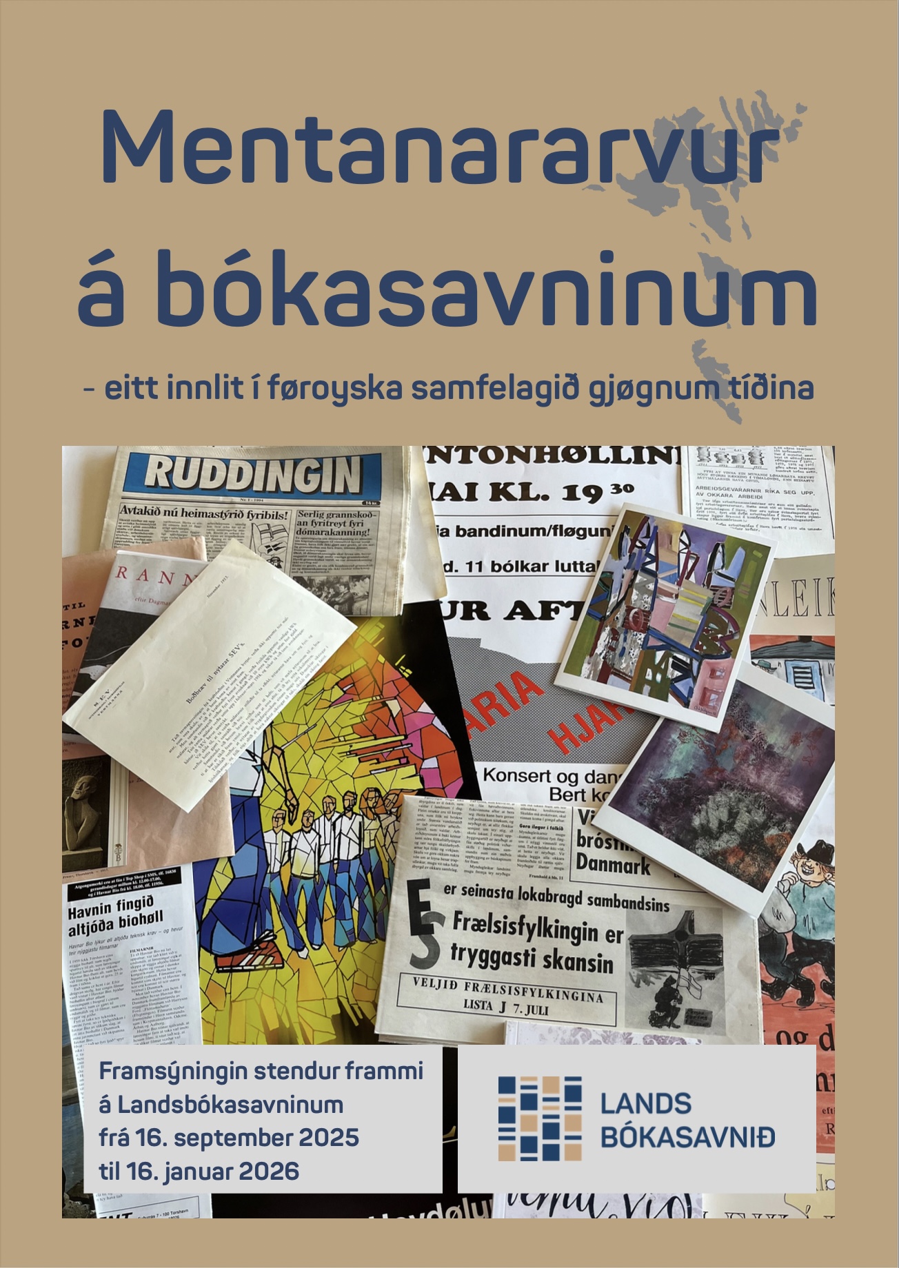 Landsbókasavnið hevur gjørt eina nýggja framsýning, har ein partur av føroyska mentanararvinum, ið Landsbókasavnið varðveitir, verður vístur. Framsýningin gevur eitt innlit í føroyska samfelagið gjøgnum tíðina.