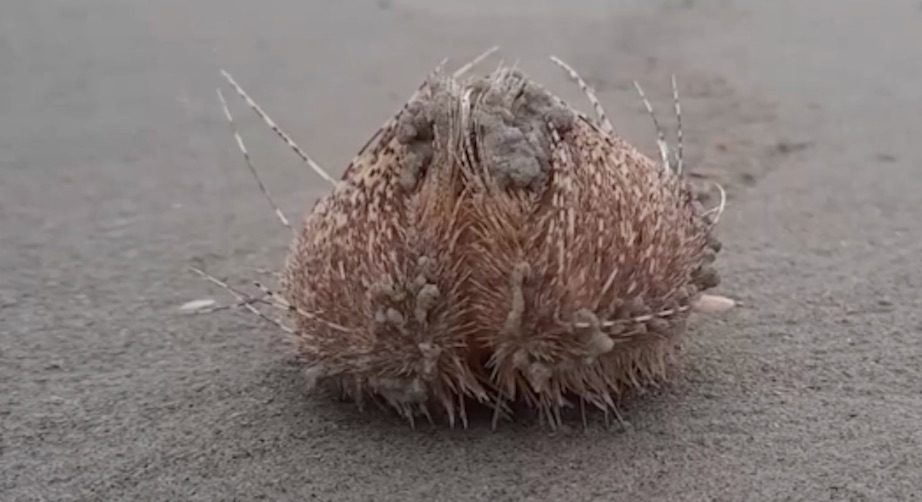 Ein ferðamaður í Thailandi, sum gekk sær ein túr eftir strondini, hevur gjørt eina upptøku av einum løgnum skapningi.