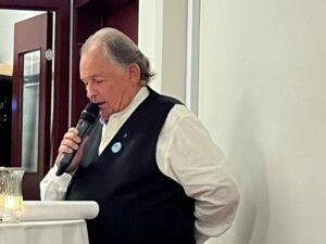 Formaðurin í eldrafelagnum úr Hvergerði helt røðu og handaði minnisgávu til Eldrafelagið á Toftum og til Nes kommunu.