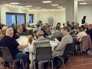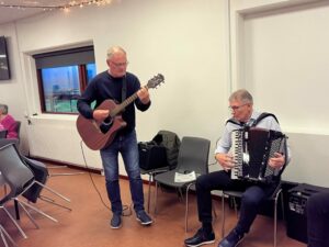 Sum altíð til hesar samkomur hjá Eldrafelagnum á Toftum, so var góður felagssangur við hugnaligum tónum frá JJ-band.
