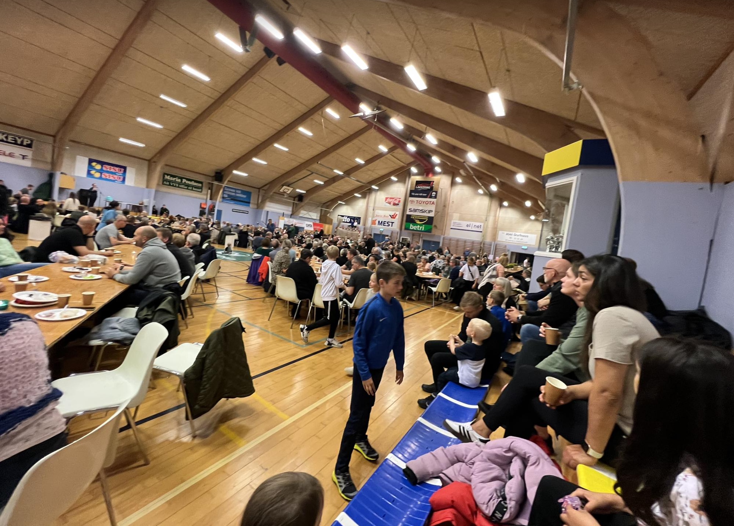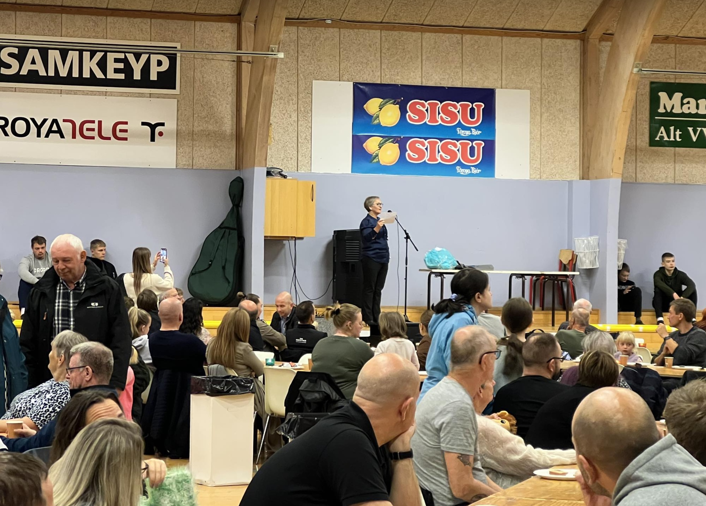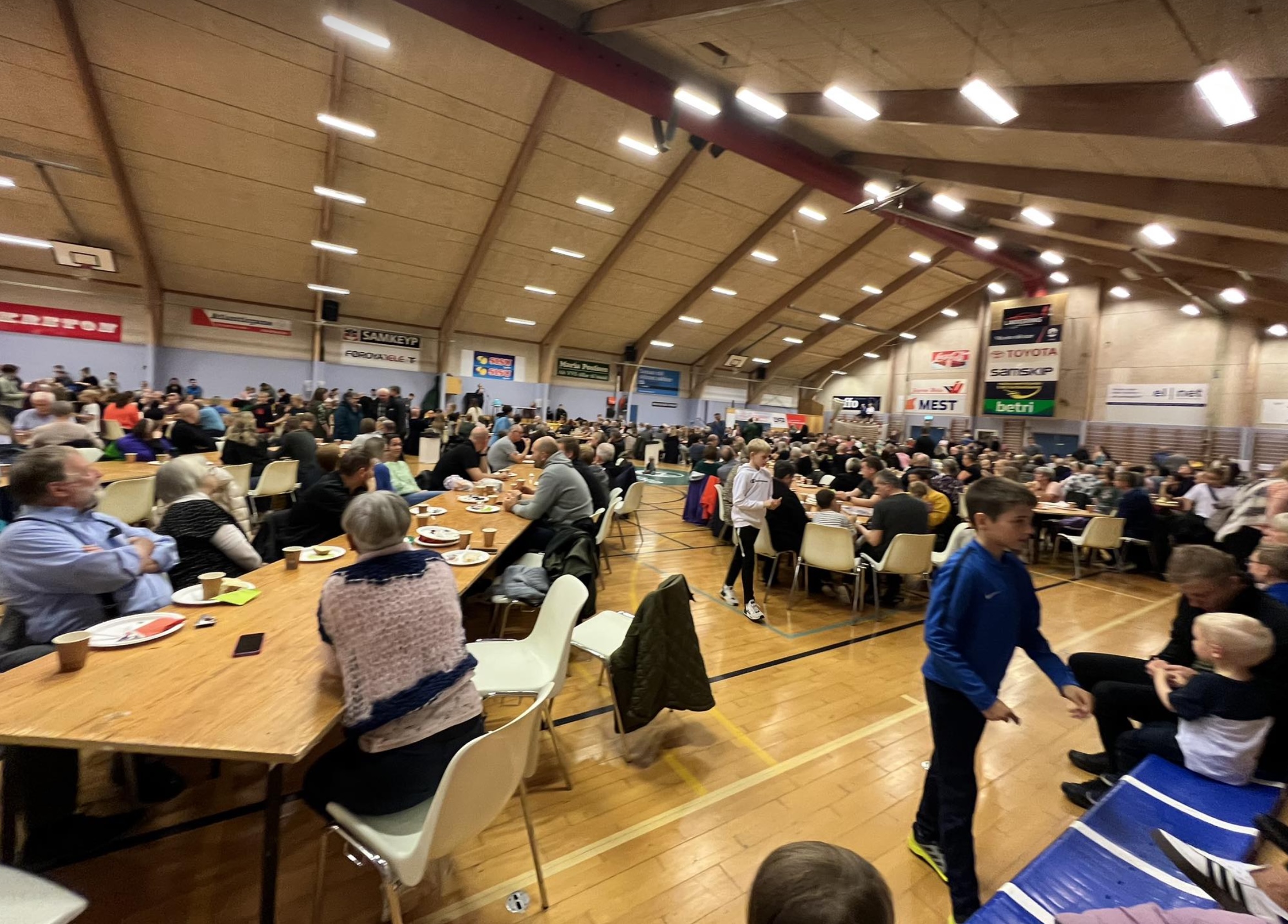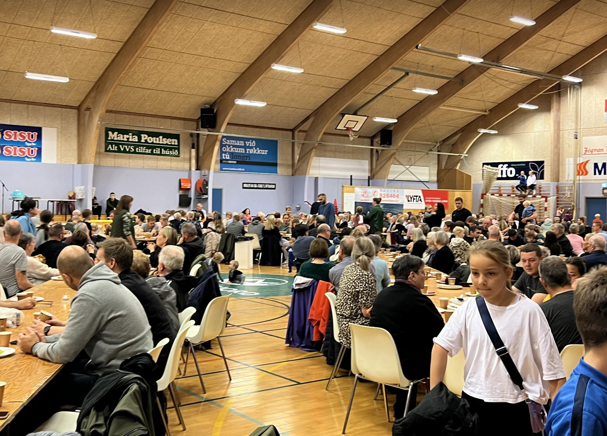Í morgun var stóra morgunmatarborðið í Ítróttarhøllini í Vestmanna í sambandi við Vestmannadagar.