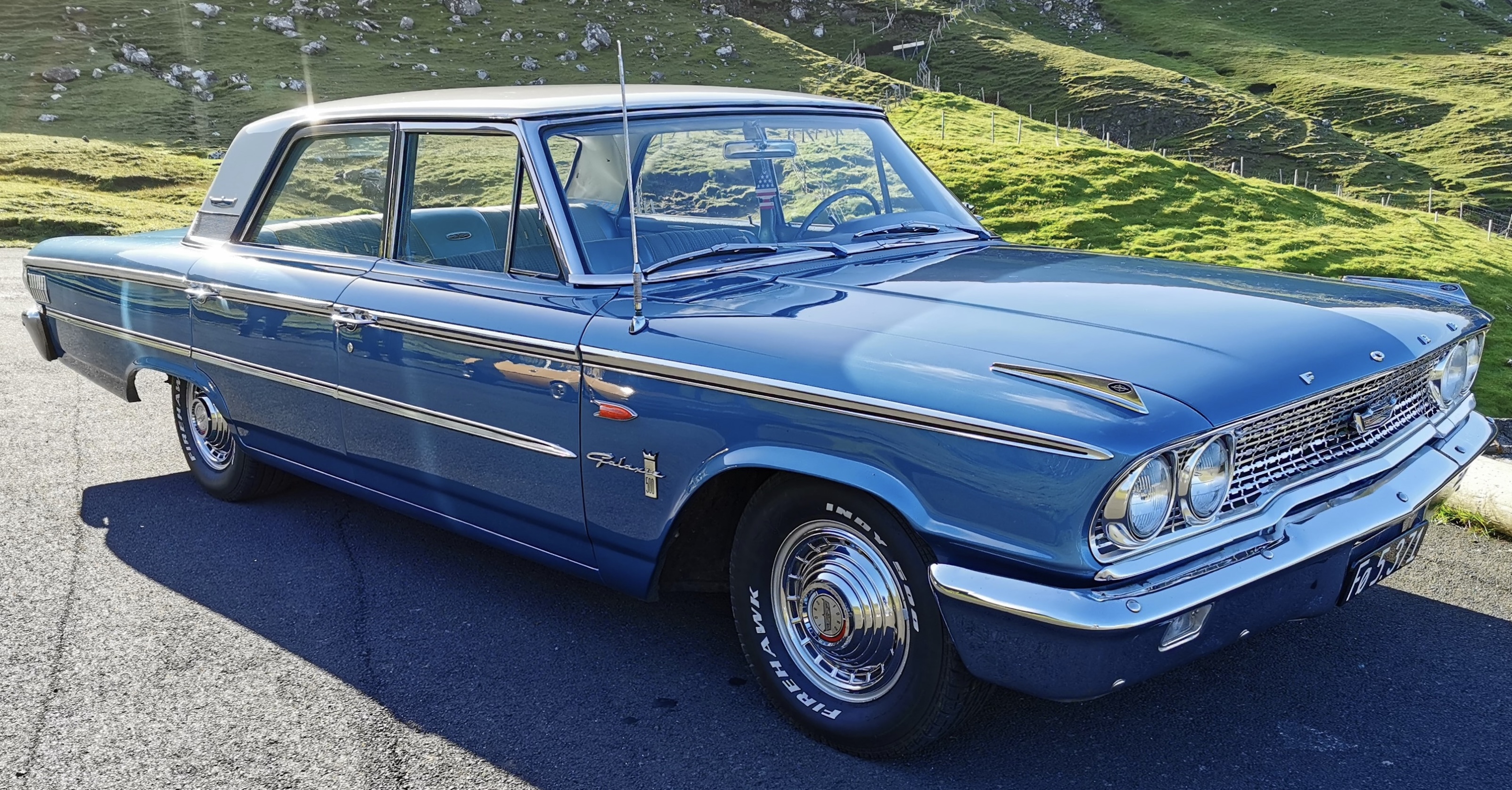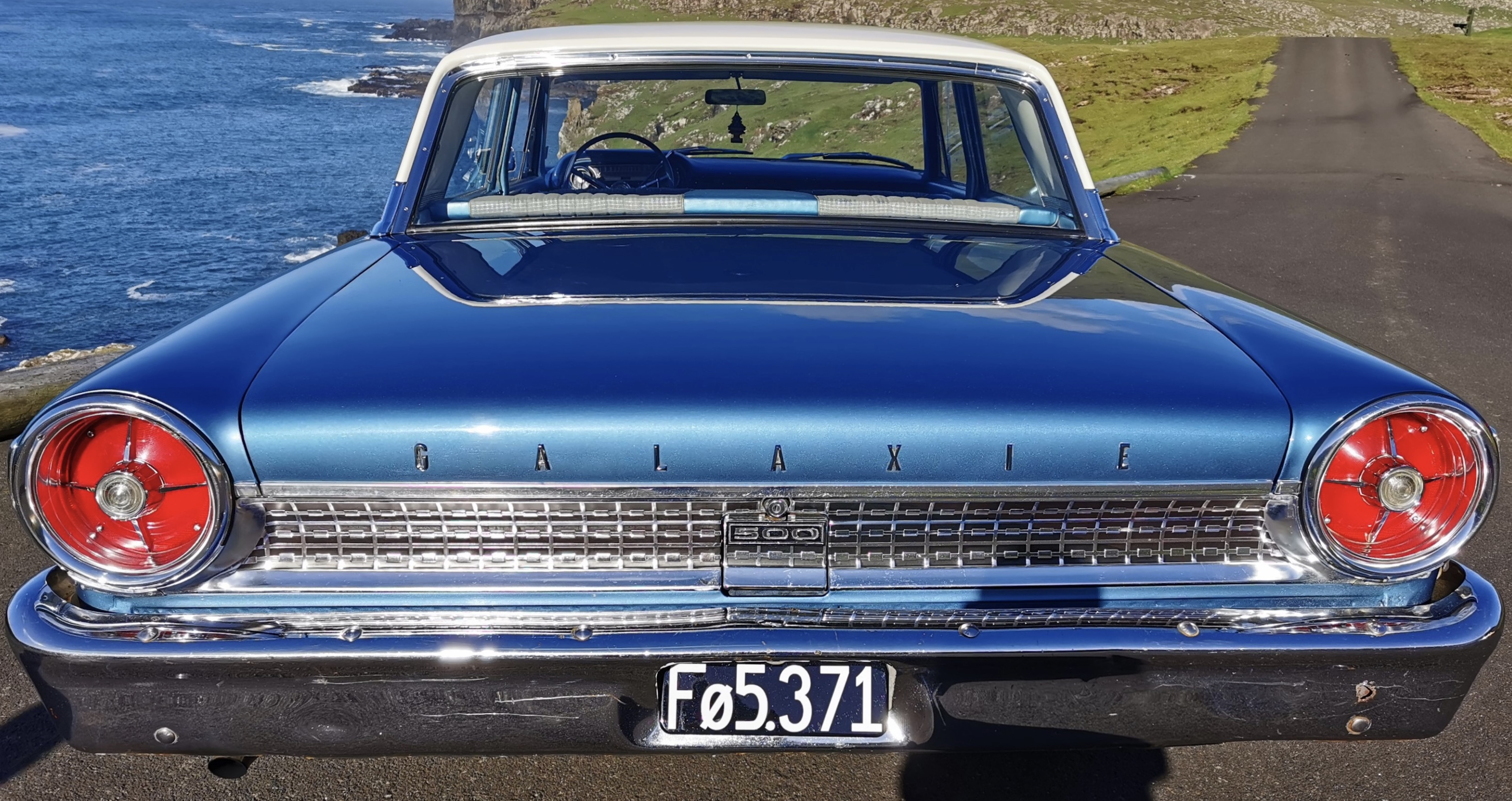 Tað er helst onkur sum minnast, at danski klædnahandilsmaðurin Gunnar Stokholm í Havn átti ein slíkan stóran Ford Galaxie, sum var árgang 1962. Tann bilurin bleiv seinni seldur til Suðuroyar, tað var Jákup Elias Olsen í Hvalba, sum keypti hann.