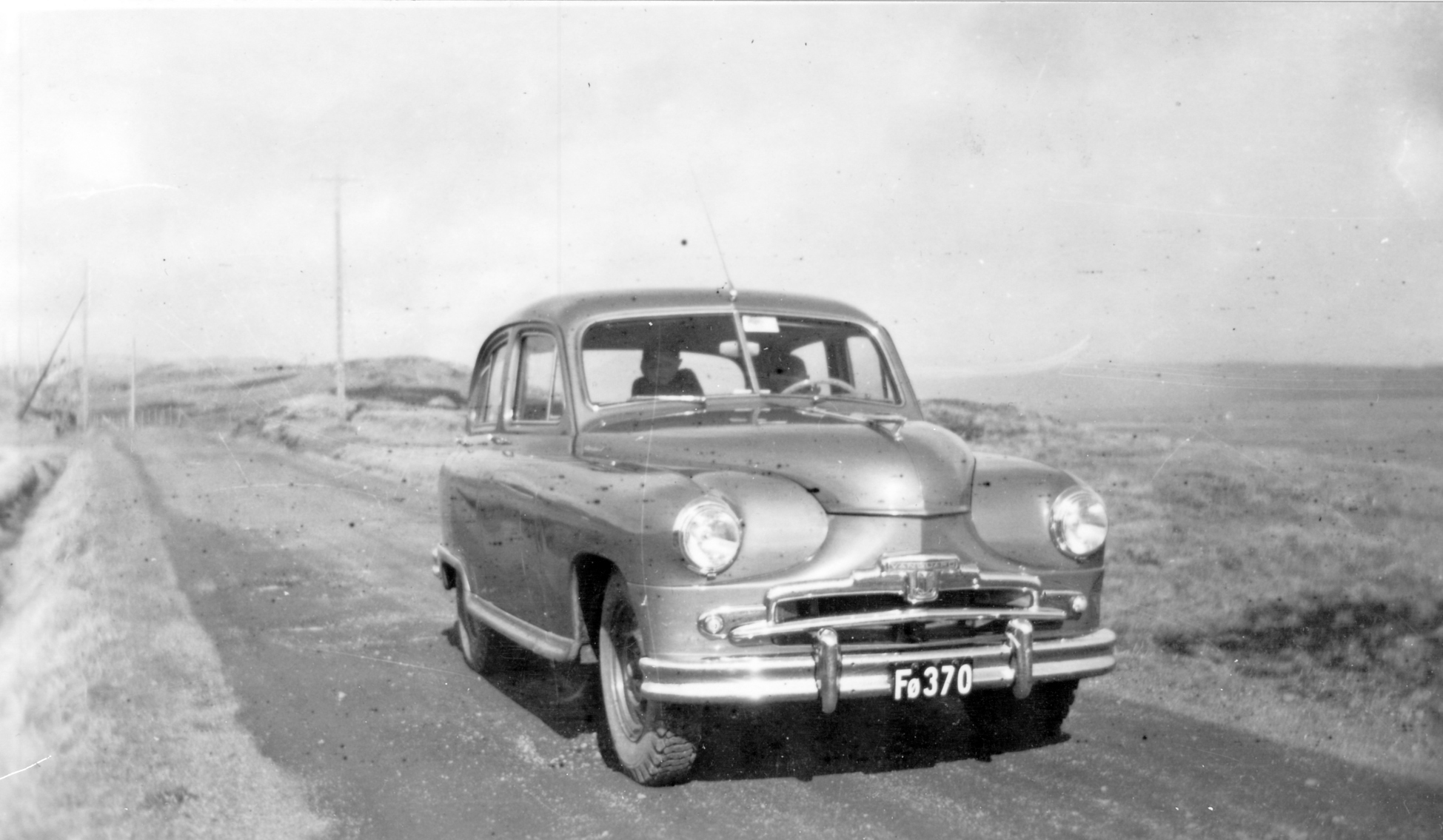 Bilurin er ein Standard Vanguard frá 1953 hjá Poul Gaard Hansen í Havn, sum koyrdi hýrukoyring á bil­støðini Bil. Frá síðst í 40-unum og nakað inn í 60-ini var Stand­ard eitt kent bilmerki her í landinum, bæði sum hýru­vogn­ar og vørubilar umframt onkrir privatbilar. Standard Vanguard vórðu gjørdir frá 1947 til 1963. Hetta mod­ellið av Standard Vanguard varð framleitt frá 1953 til 1956. Tað var Bilasølan Norrøna hjá Peturi W. Háberg og Jens Christ­ian Christiansen (Kissa), sum seldi Standard bil­ar­nar í Føroyum. Myndaeigari: Poul Gaard Hansen