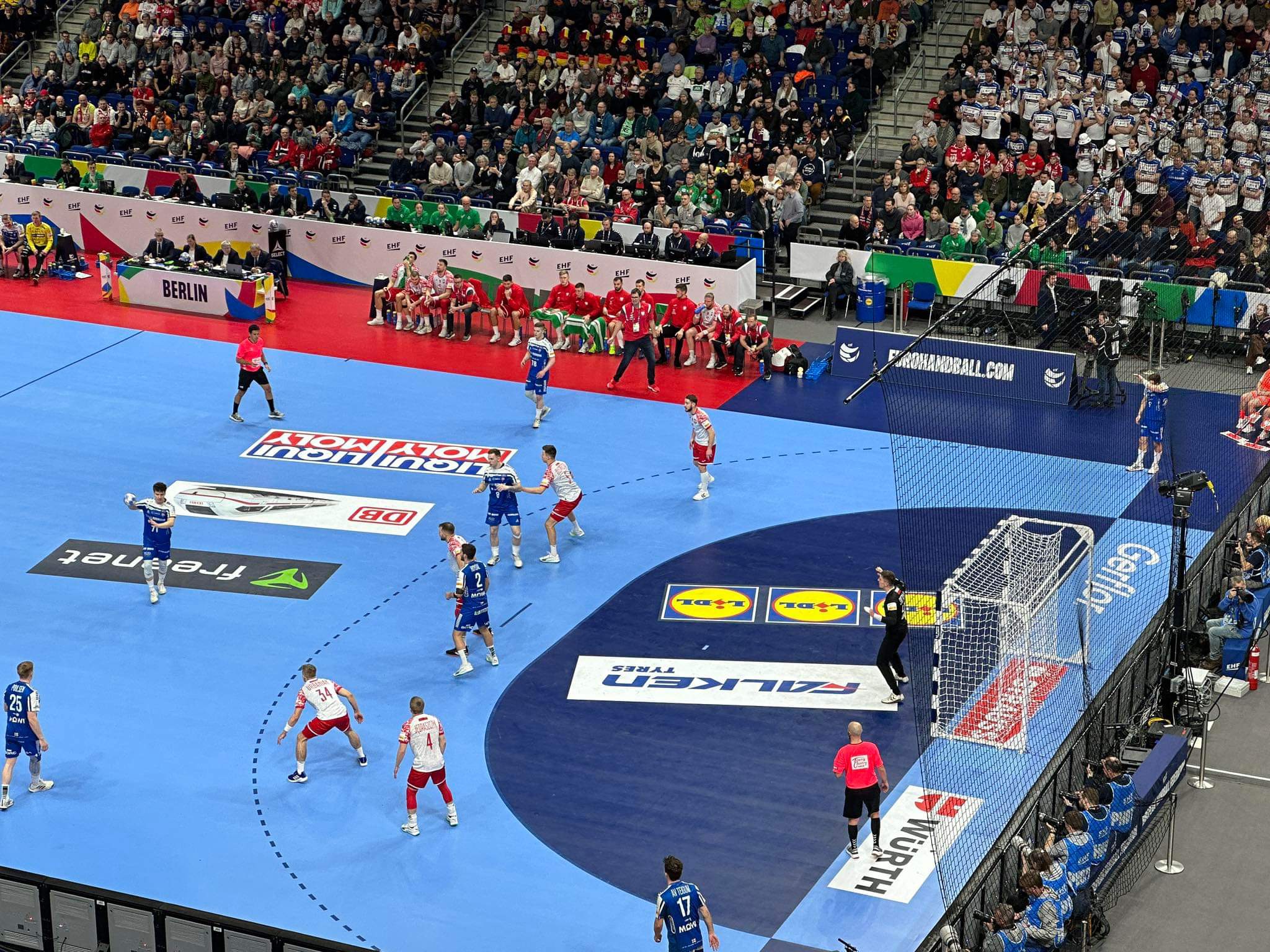 Hálvleikur er í dystinum millum Póland og Føroyar í EM-bólki D í Mercedes Benz Arena í Berlin.