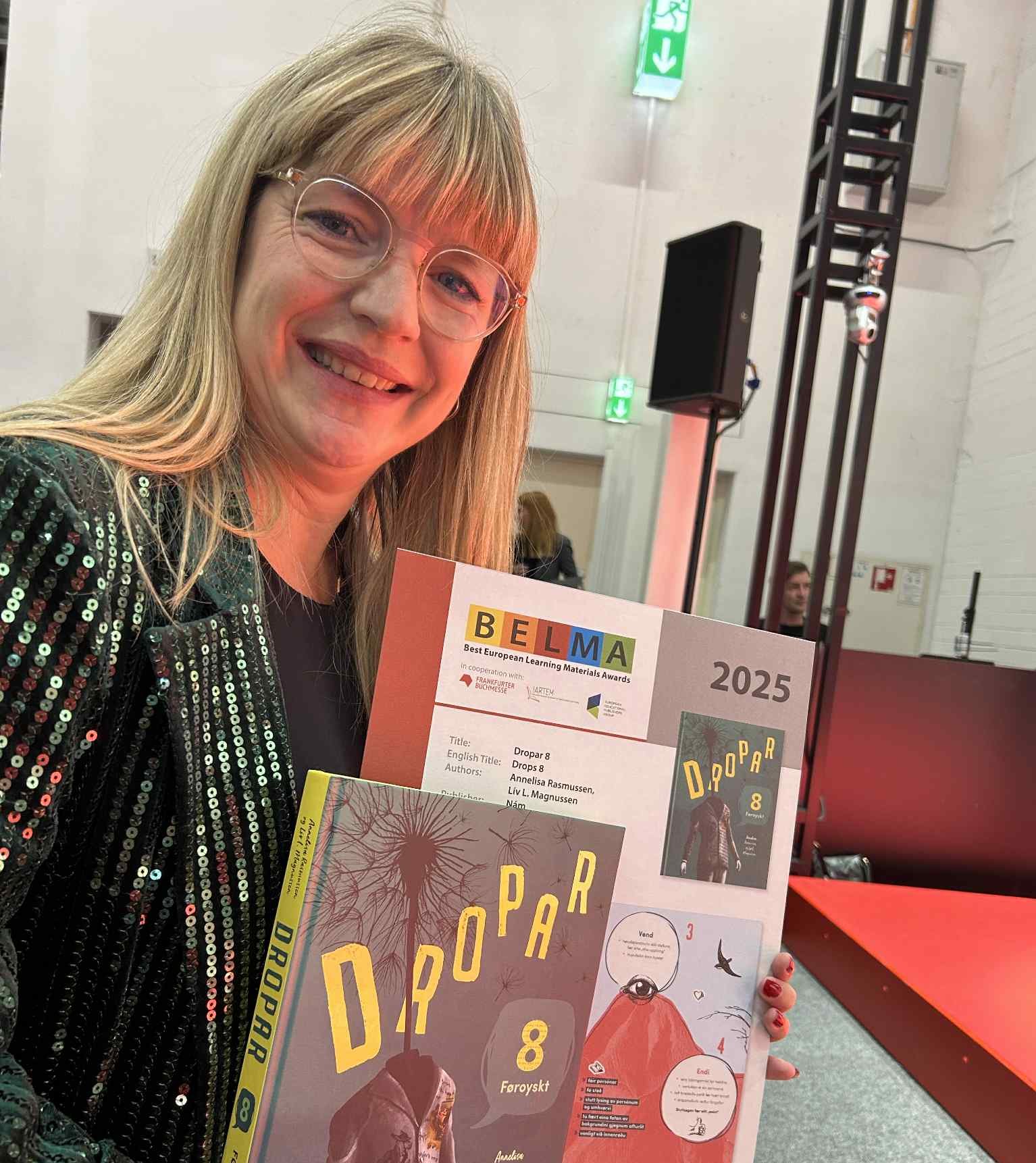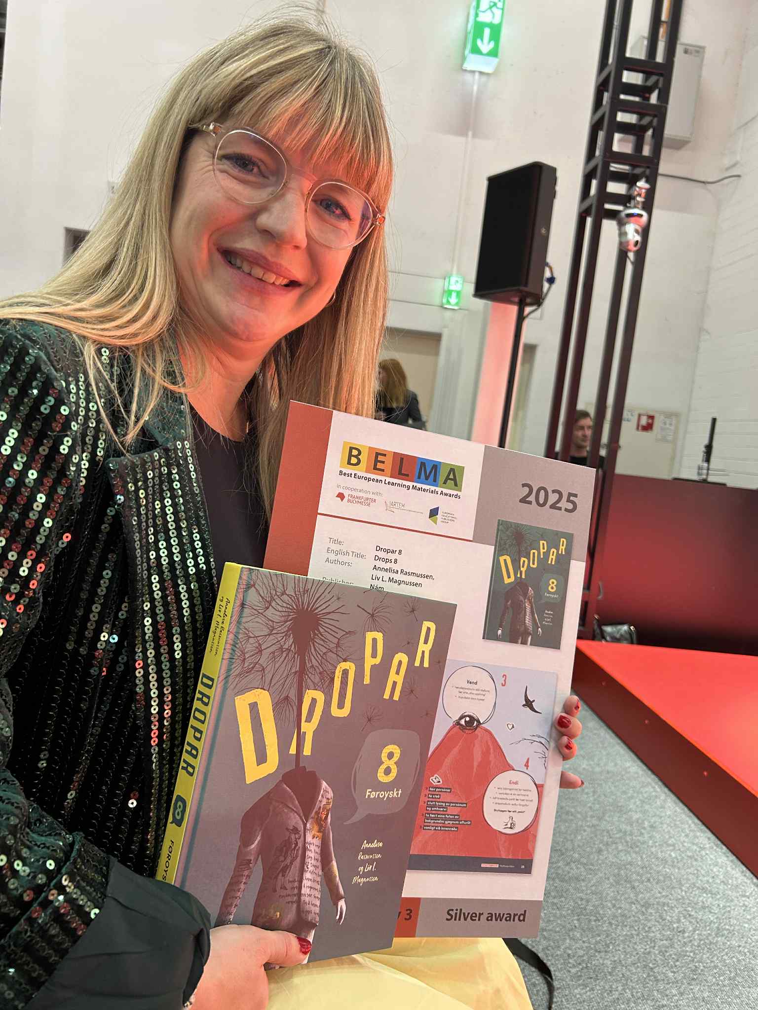 Tað er dómsnevndin í BELMA (Best European Learning MaterialsAward), sum á hvørjum ári heiðrar lærubøkur á týsku bókamessuni. Í 2024 varð Dropar 7 heiðrað við gullheiðurslønini. Nám og ritstjórnin í Dropum takkar hjartaliga fyri viðurkenningina av bókini. Tað hevur stóran týdning fyri eitt lítið forlag at fáa slíka viðurkenning, og vit gleðast um, at forløgini úr øðrum londum vísa okkara útgávum ans.