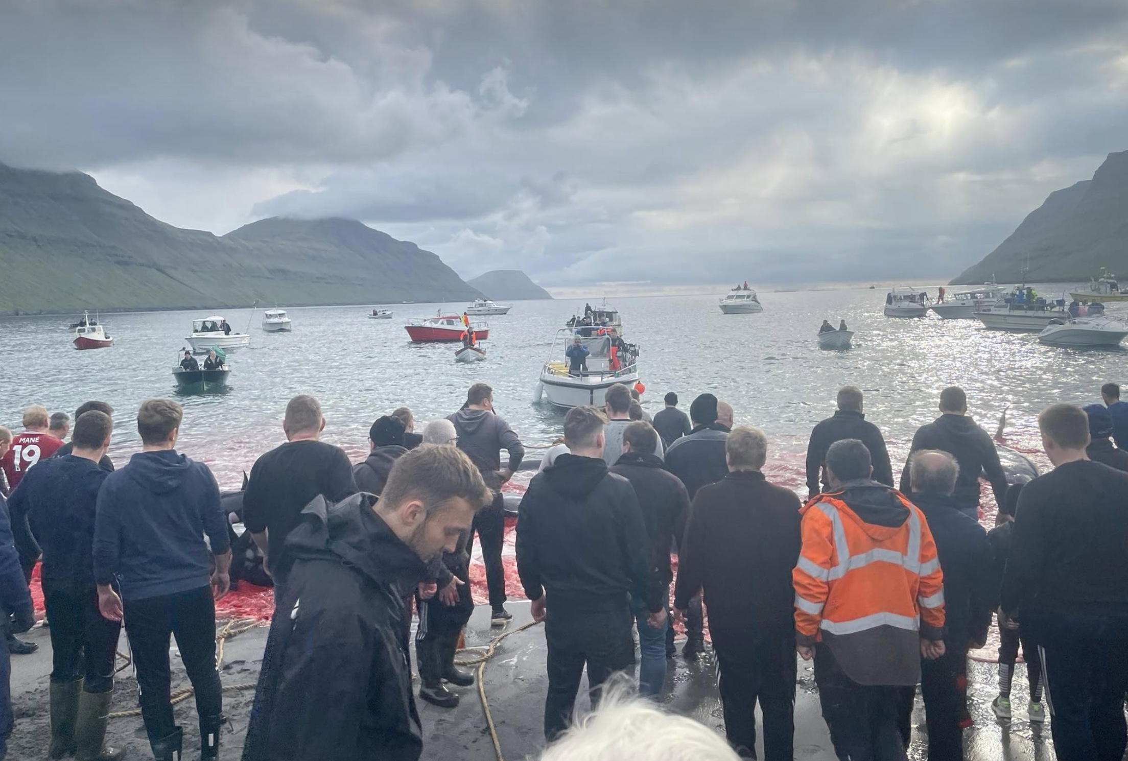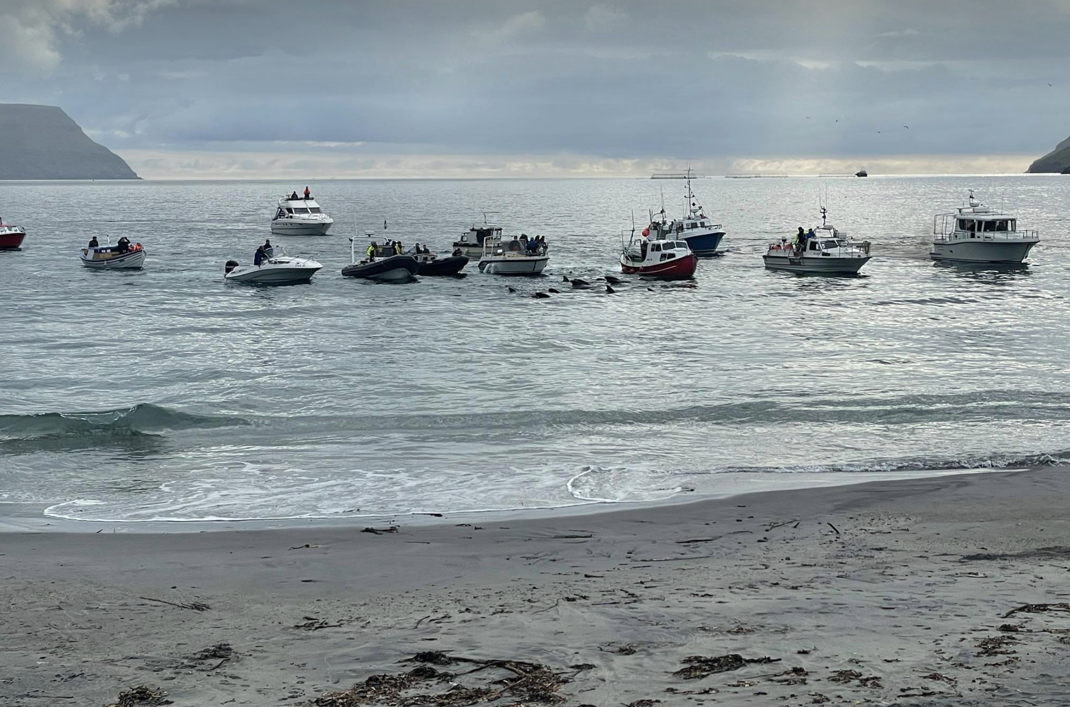 Dagføring: Grindin kom í drápið fyri eini løtu síðani, og drápið er liðugt. Tað var nokk av fólki á sandinum, og grindamenn siga, at drápið gekk bæði skjótt og væl og tók bara nakrar fáar minuttir.