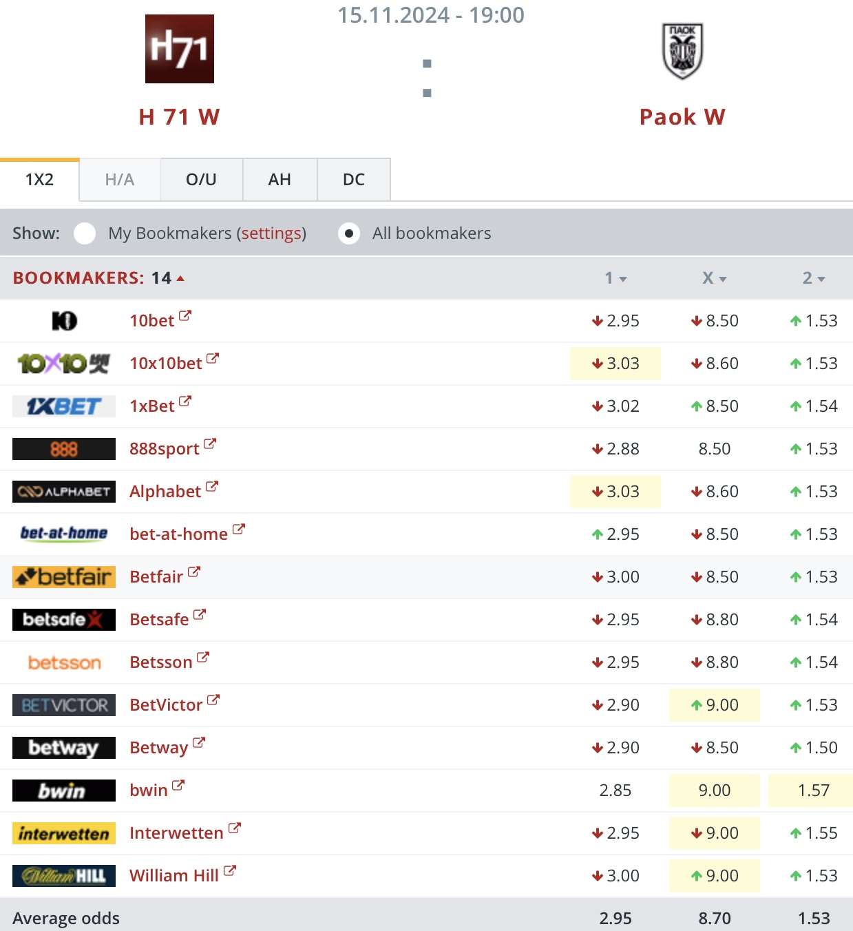 PAOK er favorittur hjá altjóða veddingarfyritøkunum, ið lata odds upp á dystin.