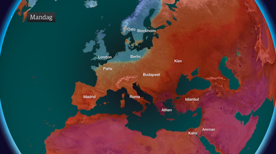 Norska kringvarpið - NRK - skrivar í dag um hitabylgjuna, sum herjar í Evropa, samstundis sum víst verður á, at tað ikki er óhugsandi, at hitin teir næstu dagarnar kann seta evropeiskt met.