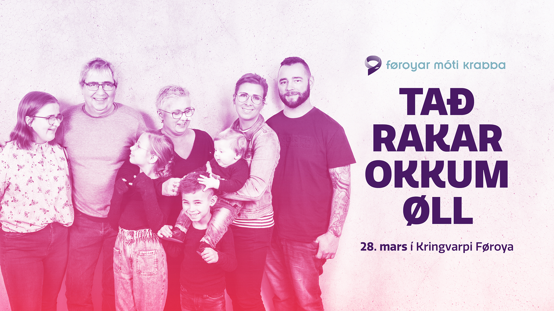 Krabbameinstilburðirnir økjast í tali, og seinastu 30 árini er talið nærum tvífaldað. Krabbamein rakar okkum øll, so ella so. Umleið triði hvør føroyingur fær staðfest krabbamein einaferð í lívinum, og tí eru nógv avvarðandi, børn, makar, familja, vinir og starvsfelagar. Fleiri hava mist, og fleiri hava yvirlivað. Tað munnu vera fá í Føroyum, sum ikki hava havt samband við krabbamein.