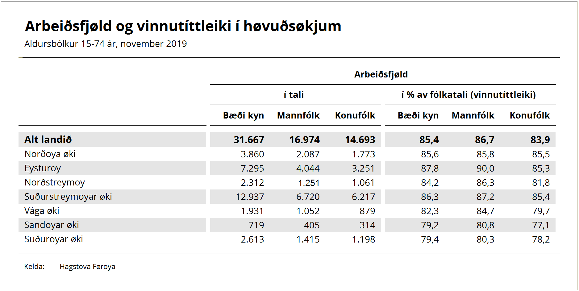 Hetta er eitt av høvuðsúrslitunum av arbeiðsfjøldarteljingini, sum Hagstovan gjørdi í november í fjør.