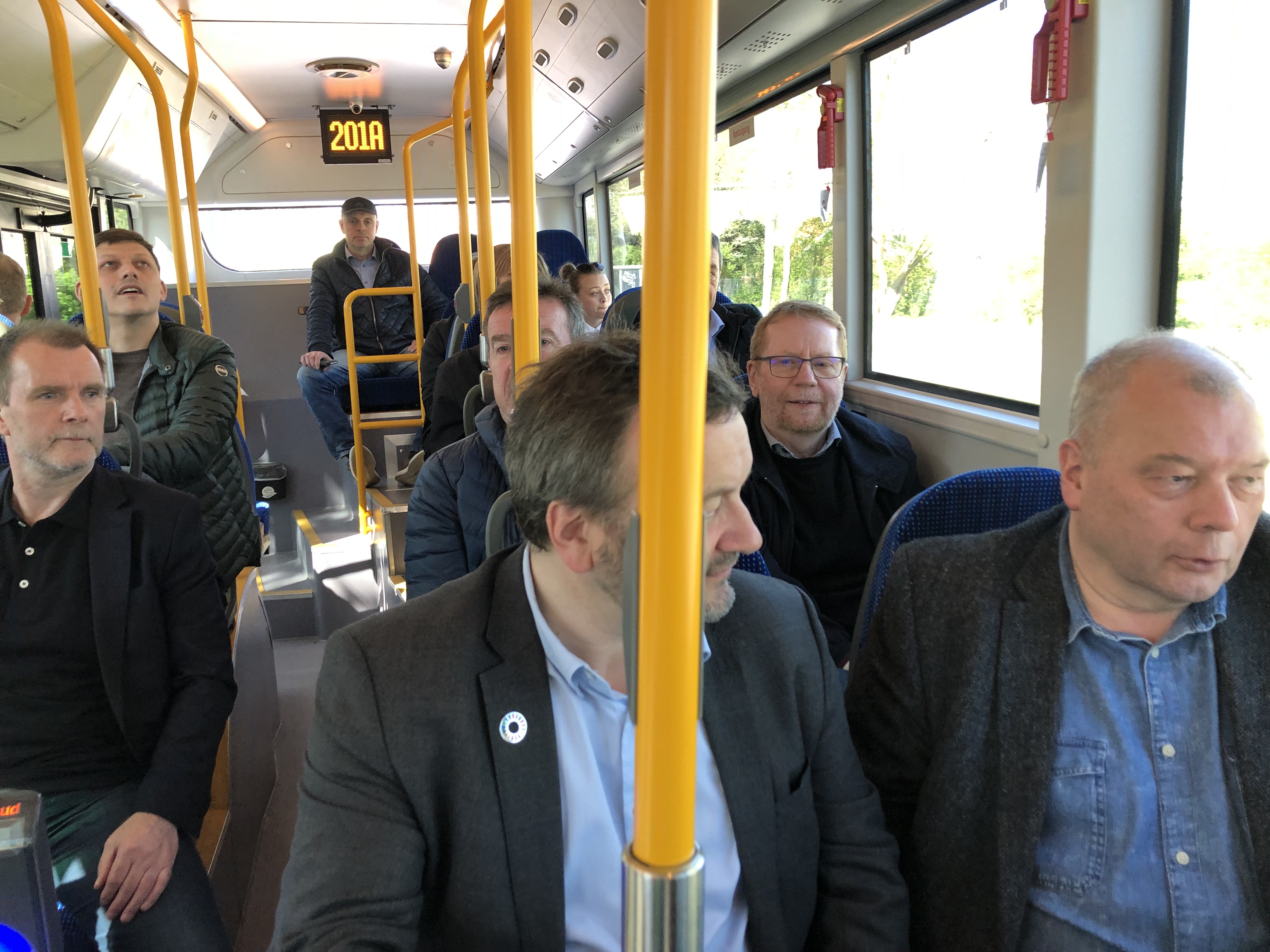 – Vit hava koyrt við bussunum, og teir roynast sera væl. Tað er eitt sindur serligt at koyra við teimum, tí teir eru heilt ljóðleysir. Teir hava nú koyrt í góðar tvær vikur í Roskilde, og tað hevur gingið framúr væl uttan nakrar trupulleikar, sigur Johan Mortensen, konsulentur, sum saman við Árna Jakobsen, stjóra í SMJ, hevur fyriskipað ferðina hjá føroyingunum.