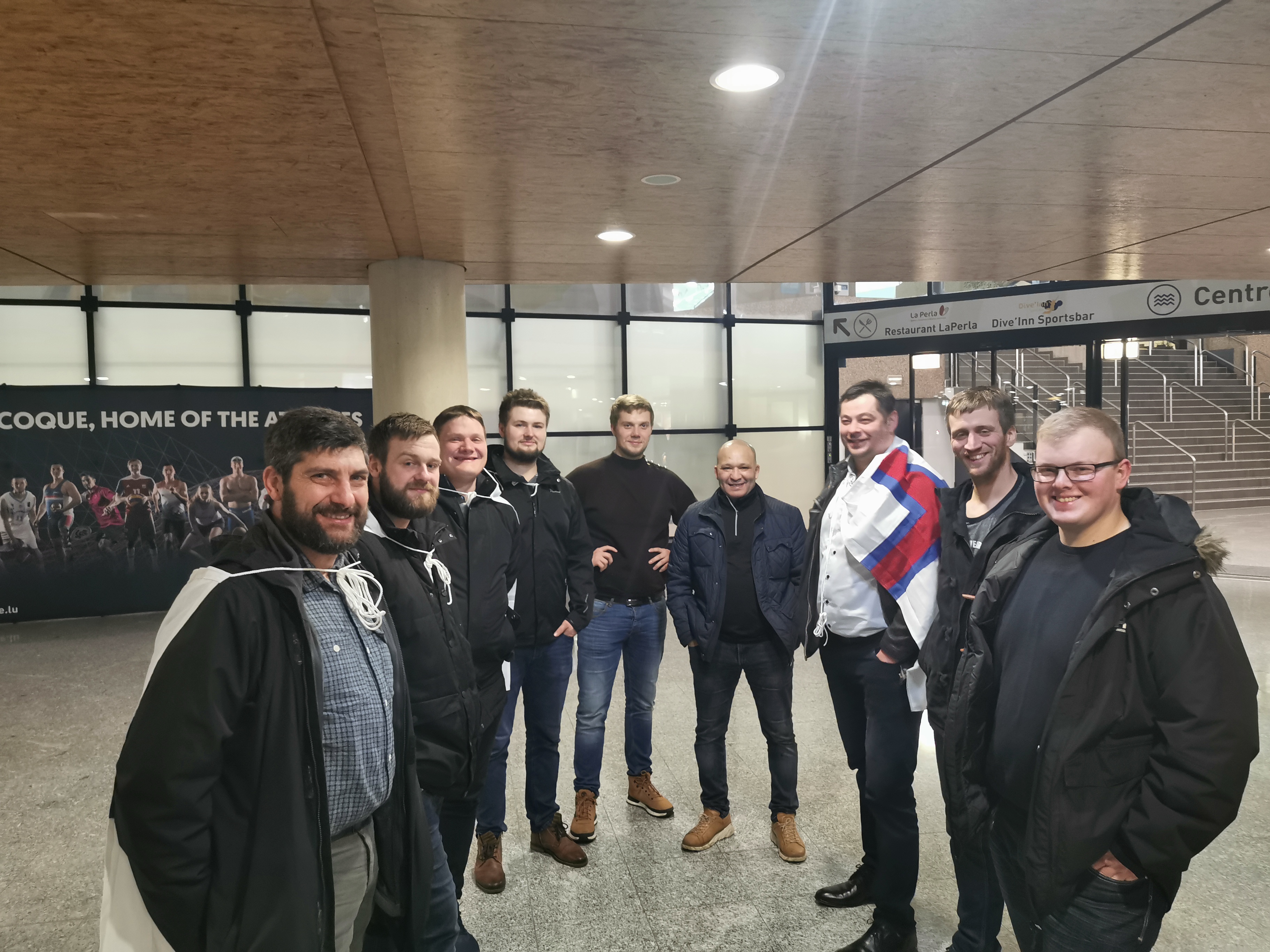 Hetta var manningin á Mykinesi, sum liggur í Rotterdam. Hesir menn høvdu leigað sær bilar og koyrt teir fýra tímarnar til Luksemborg.