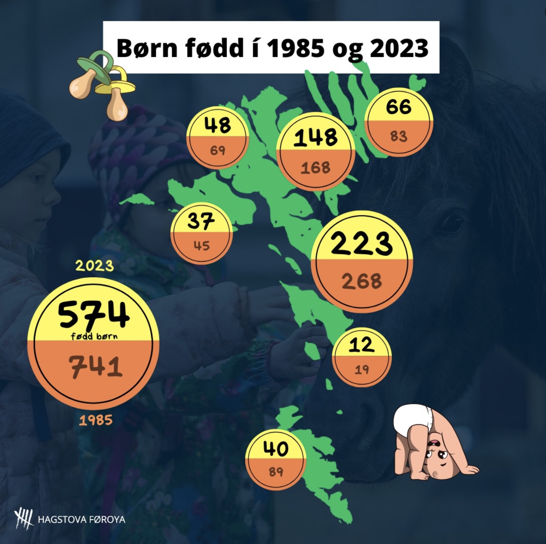 Í Norðstreymoyar øki eru 30% færri børn fødd í 2023 enn í 1985.