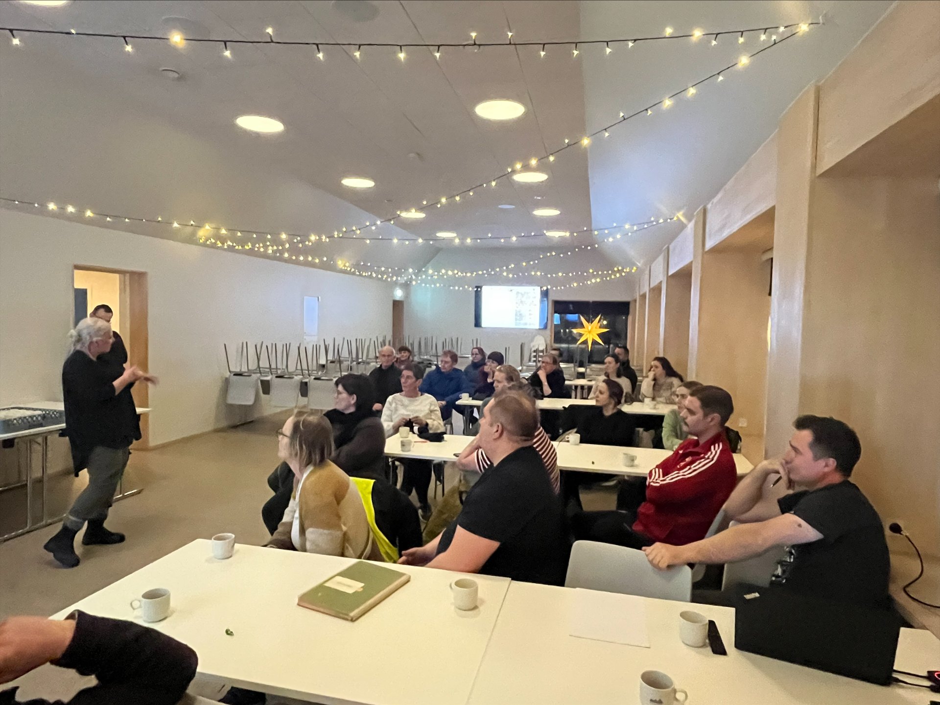 Á fundinum luttóku eisini Noomi Reinert og Arnfinnur Nesá, nevndarforkvinna og nevndarlimur í MÁF. Tey bæði eru eisini virkin í sjónleikaravirkseminum í Losjuni í Gøtu, og tey greiddu frá MÁF (Meginfelag Áhugaleikara Føroya) og royndum teirra innan sjónleik.