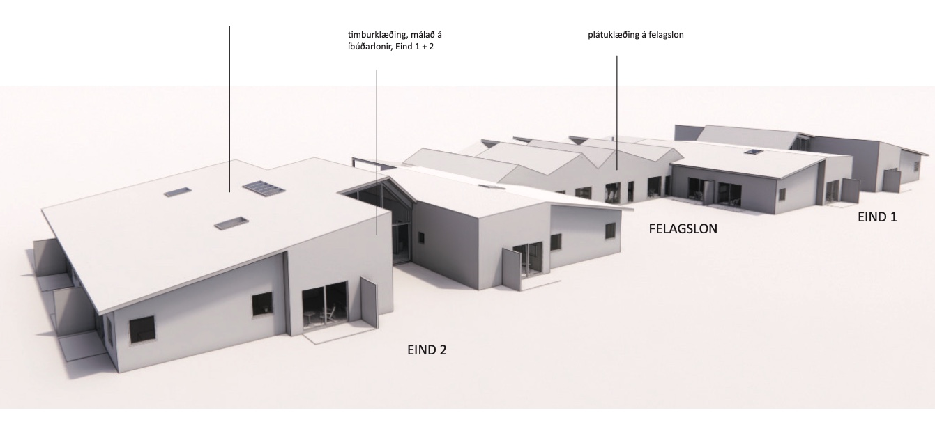Í Sambýlinum eru 18 bústaðir, umframt felagshølir og onnur høli til ymiskt felags virksemi.