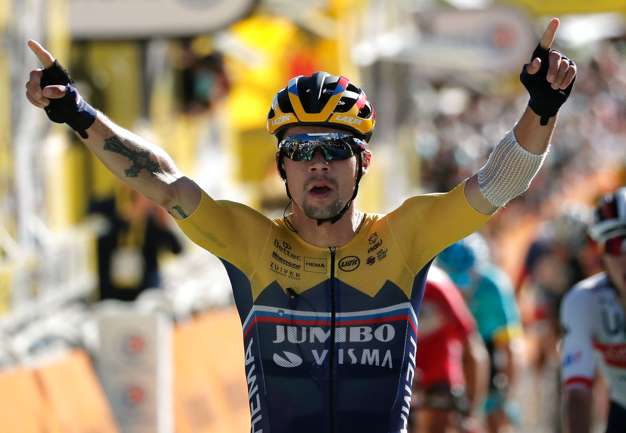 Spurturin byrjaði tá ið 500 metrar vóru eftir, og tað var ein av heilt stóru favorittunum at vinna Tour de France í ár, slovenski Primož Roglič frá Team Jumbo–Visma, ið vann frammanfyri landsmannin Tadej Pogačar frá UAE Team Emirates.