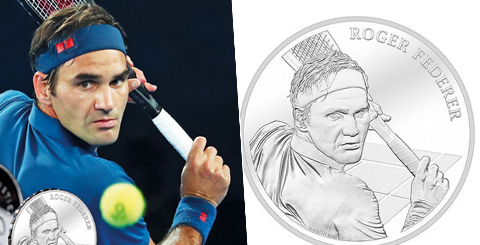 Tað verður 20-sveisarafrankin í silvur, sum frá í januar fer at verða prýddur við Roger Federer meðan hann er í ferð við at sláa eina bakhond. Seinni verður hann eisini at síggja á 50-sveisarafrankinum í gulli.