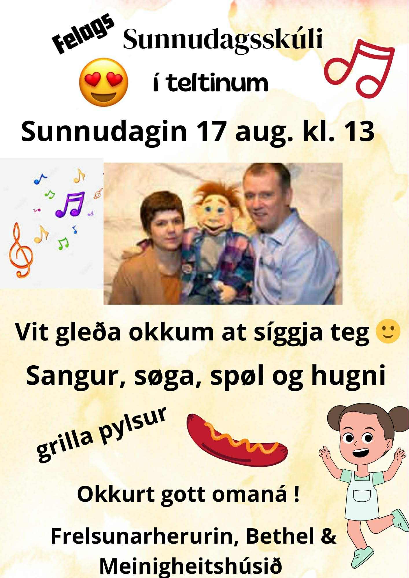 M.a. er lýst, at felags sunnudagsskúli verður sunnudagin í tjaldinum miðskeiðis í býnum, og har verður sjálvsagt gjørt eitt sindur meira burturúr, enn vanligt.