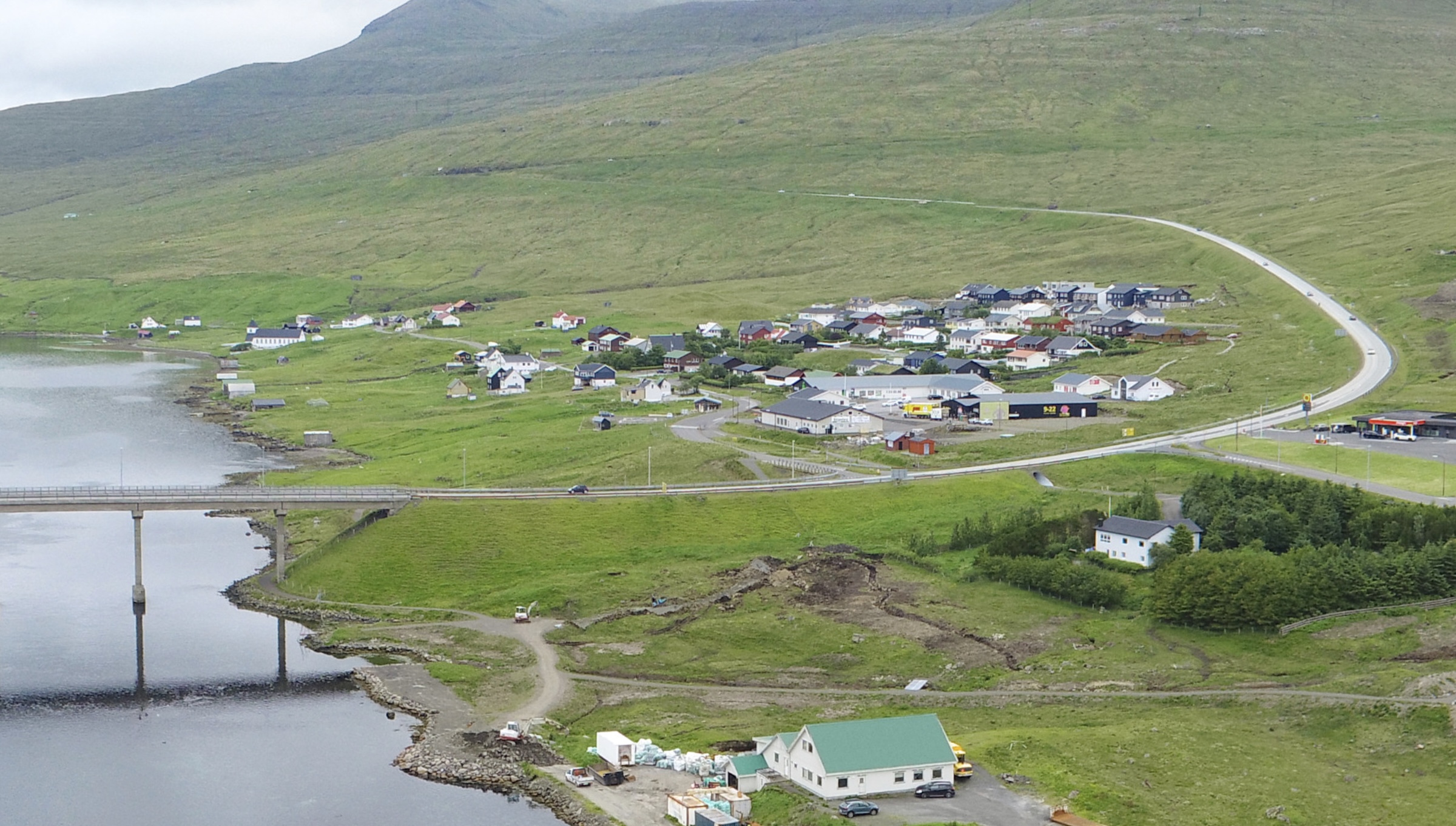 Tað var á vegamótinum, har Norðskálavegur kemur út í landsvegin. Ein bilur koyrir út á landsvegin – út fyri ein bil, sum kemur oman frá tunnilsvegnum.