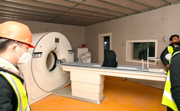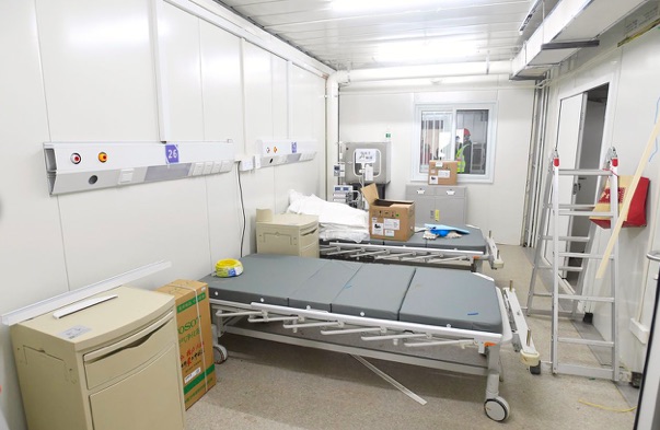Í morgin - mánamorgunin - kunnu 1400 heilsustarvsfólk fara til arbeiðis á nýggja sjúkrahúsinum, sum hevur pláss fyri 1000 sjúklingum við corona-virusi. Myndir, sum eru tiknar inni á sjúkrahúsinum, vísa, at eitt nú sengur og CT-maskinur eru upp á pláss.