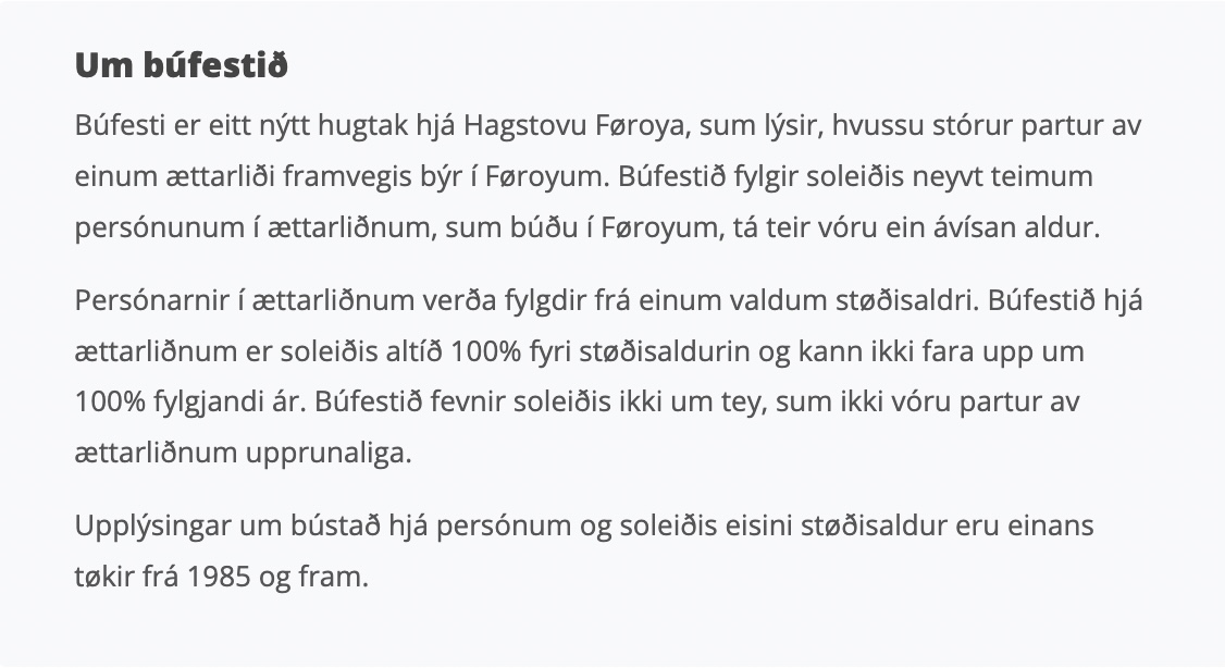 Tað ber til at síggja, hvussu stórur partur av tínum ættarliði framvegis býr í Føroyum her.