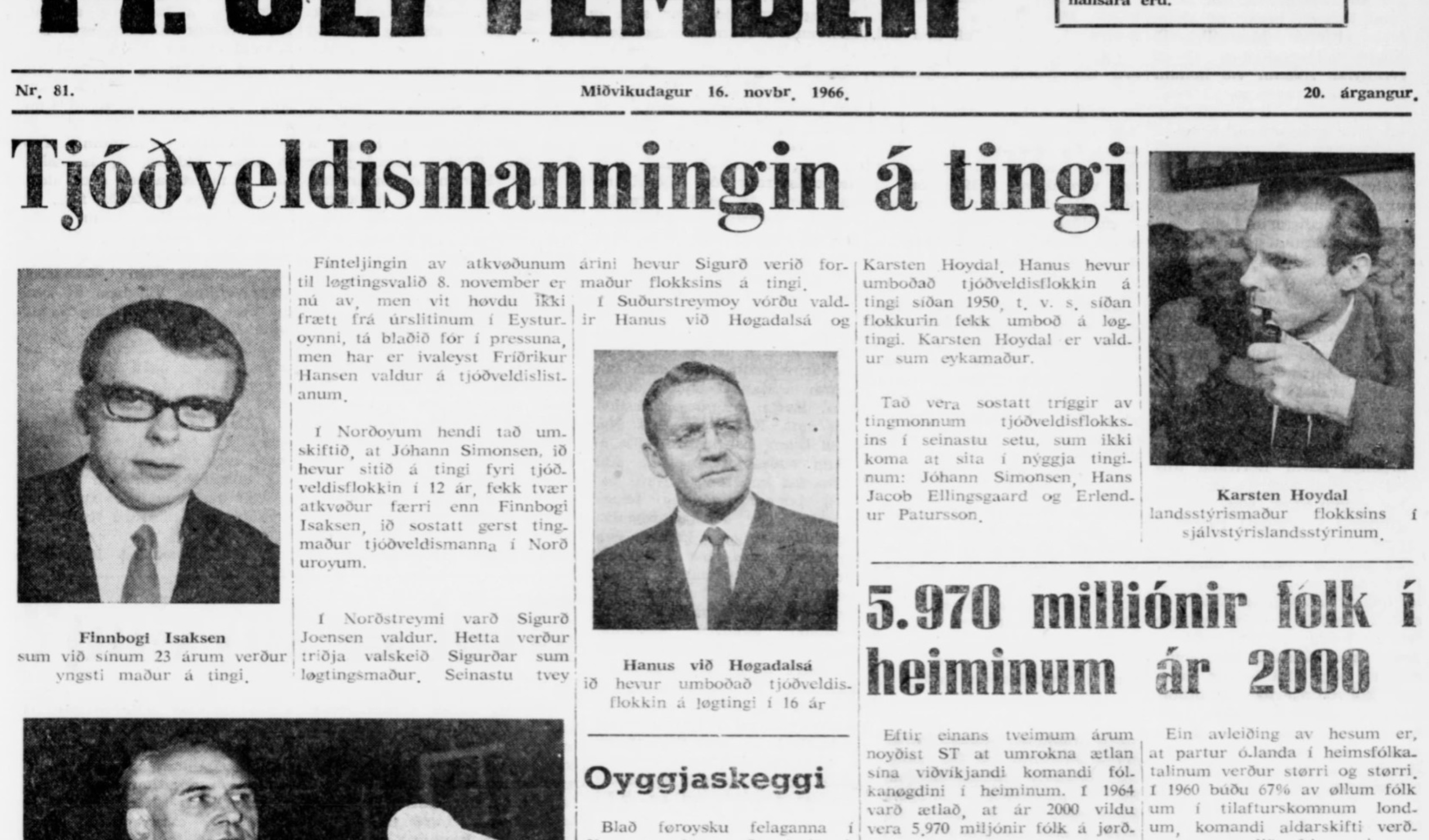 Á løgtingsvalinum 8. november í 1966 hendi nøkulunda tað sama eftir fínteljingina, sum hesaferð, at tann tjóðveldismaðurin, sum valkvøldið átti tingsessin, misti hann eftir fínteljingina.