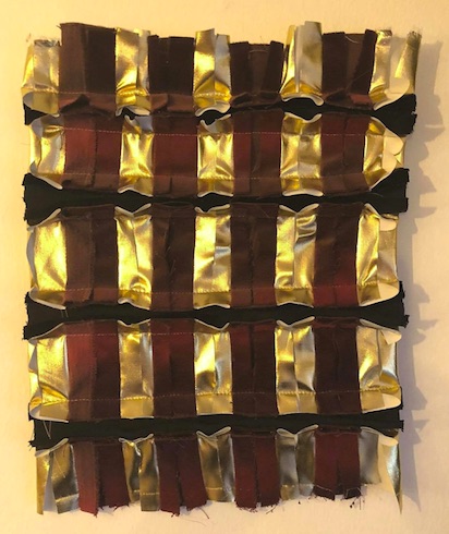 Hon vísir á, at verkini hjá Randi Samsonsen eru sett saman úr toyi, sum listakvinnan hevur viðgjørt á ymiskan hátt, m.a. hevur hon sprayað á nøkur teirra. Síðan eru tey sett saman í strípum. Strípurnar í verkunum hjá Randi Samsonsen eru bæði dekorativar og hard edge modernaðar. Sum heild eru strípur bæði eitt tað mest einfalda, men eisini ein tann sterkasta mynsturtekningin í abstraktari list. Strípur sameina og býta upp í líka stórar støddir.