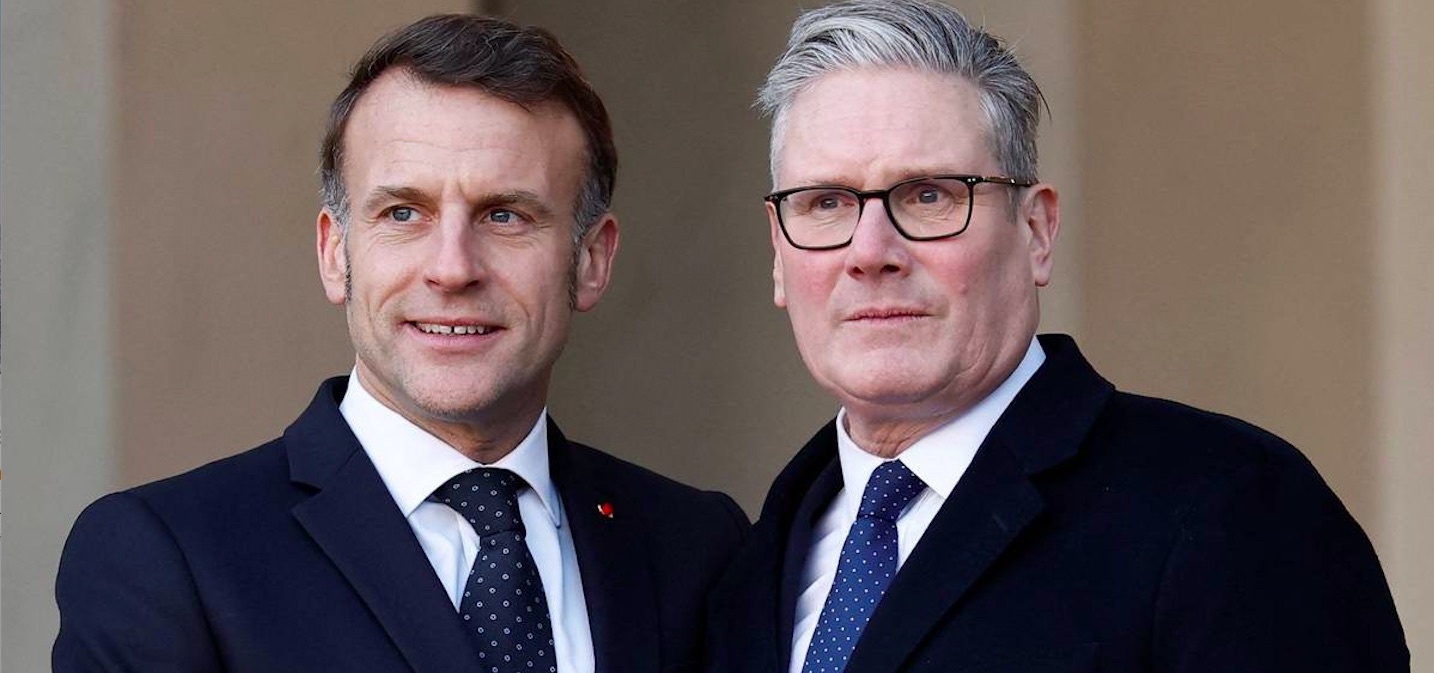 Á myndini omanfyri eru tað franski forsetin, Emmanuel Macron og bretski forsætisráðharrin, Keir Starmer.