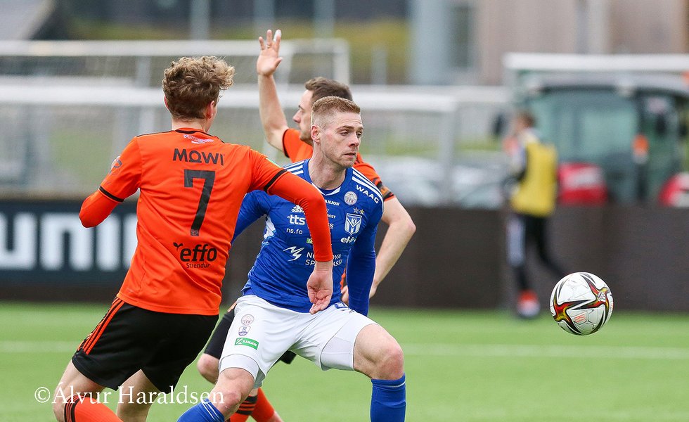 Síðsti dystur í bestu deildini undan landsliðssteðginum verður nú klokkan 15 í Klaksvík, har Skála er gestur hjá KÍ.